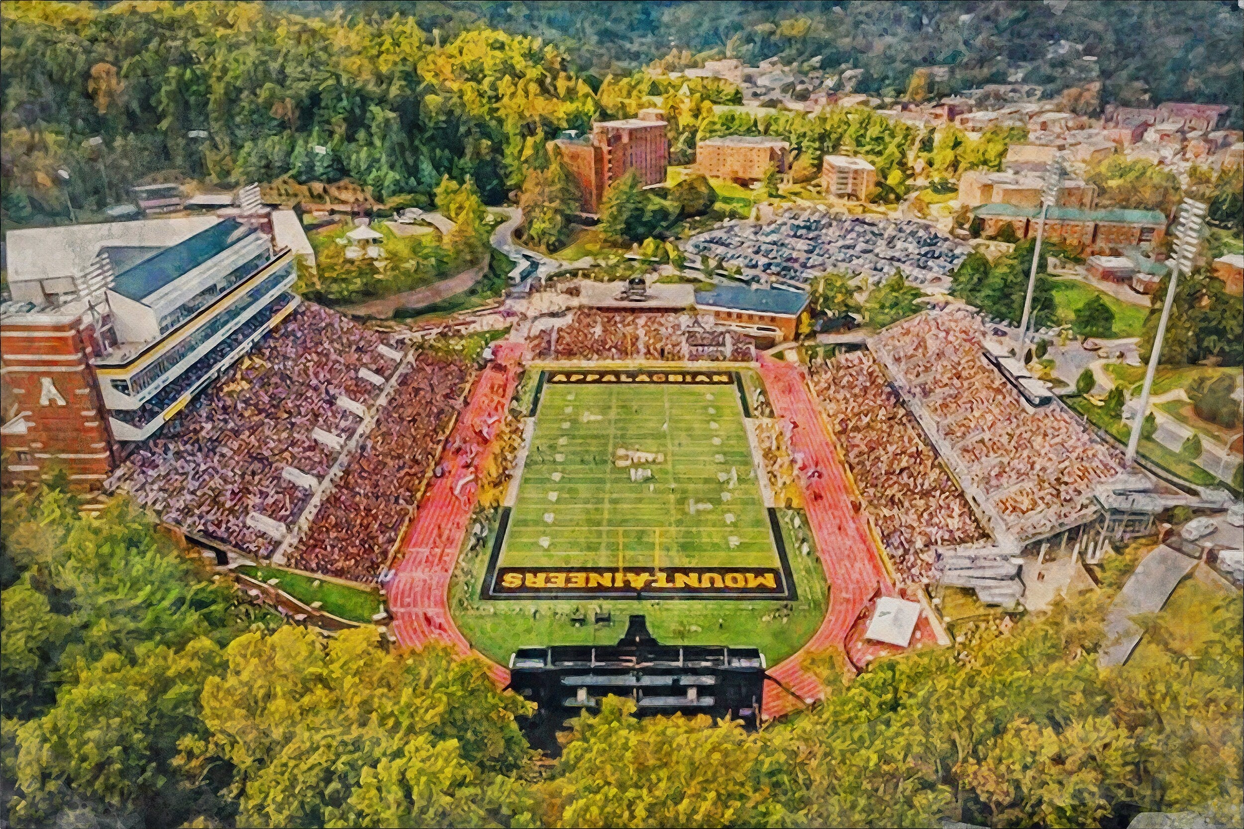 This Kidd Brewer Stadium in Boone North Carolina is the perfect decor for any home. This print of my digitally custom created wall art will last a lifetime. Kidd Brewer Stadium at Appalachian State University Poster