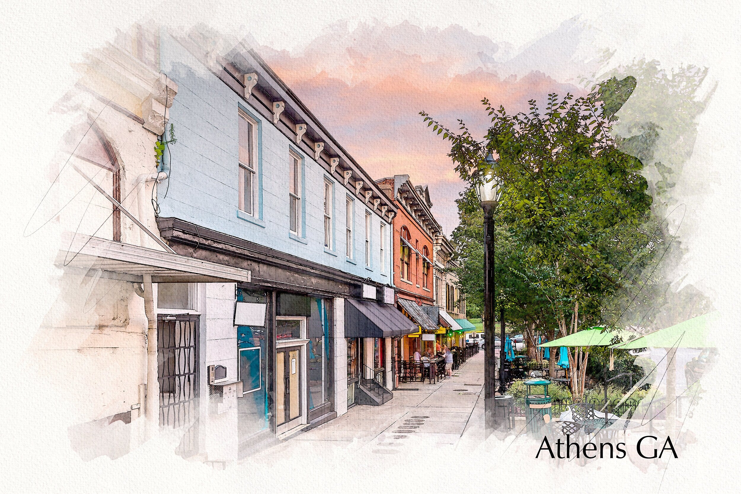 Athens Georgia sketch watercolor canvas, Athens Canvas, Athens wall canvas, Athens wall art, University of Georgia watercolor