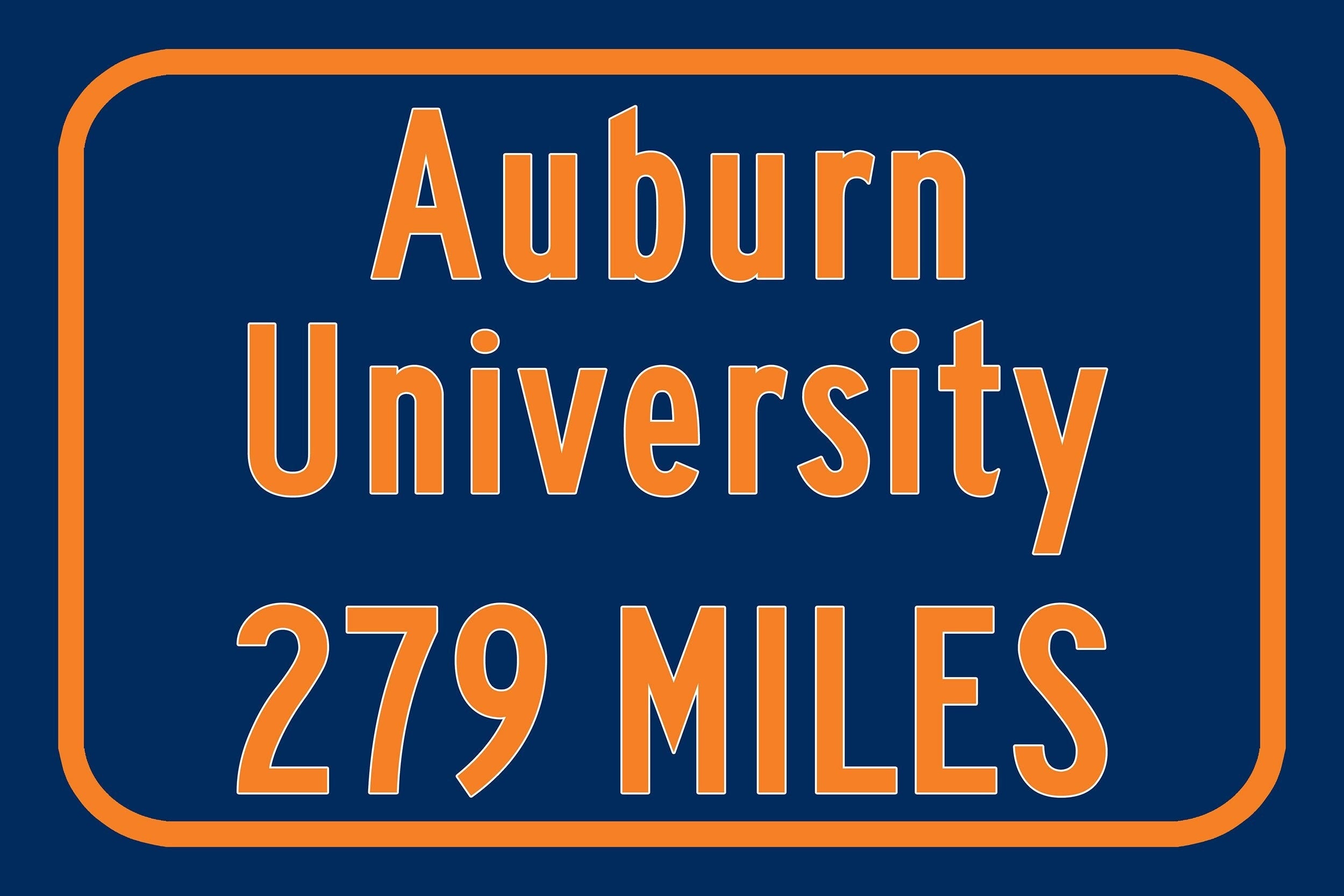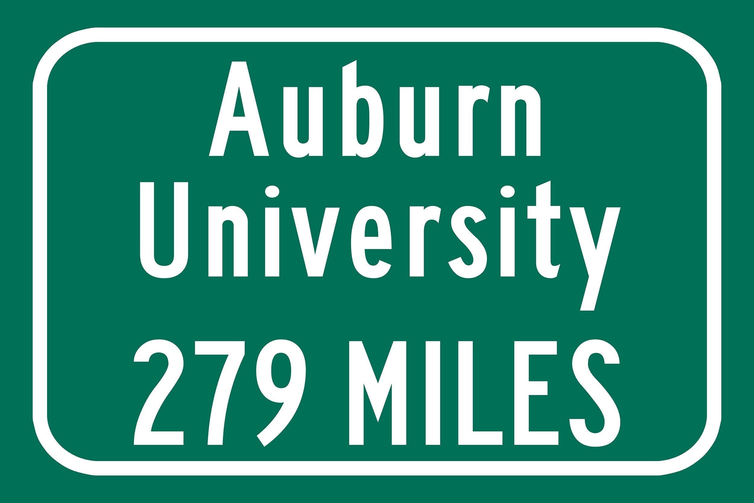 Personalized Highway Distance sign to Auburn University. Auburn University sign. Auburn Alabama sign.