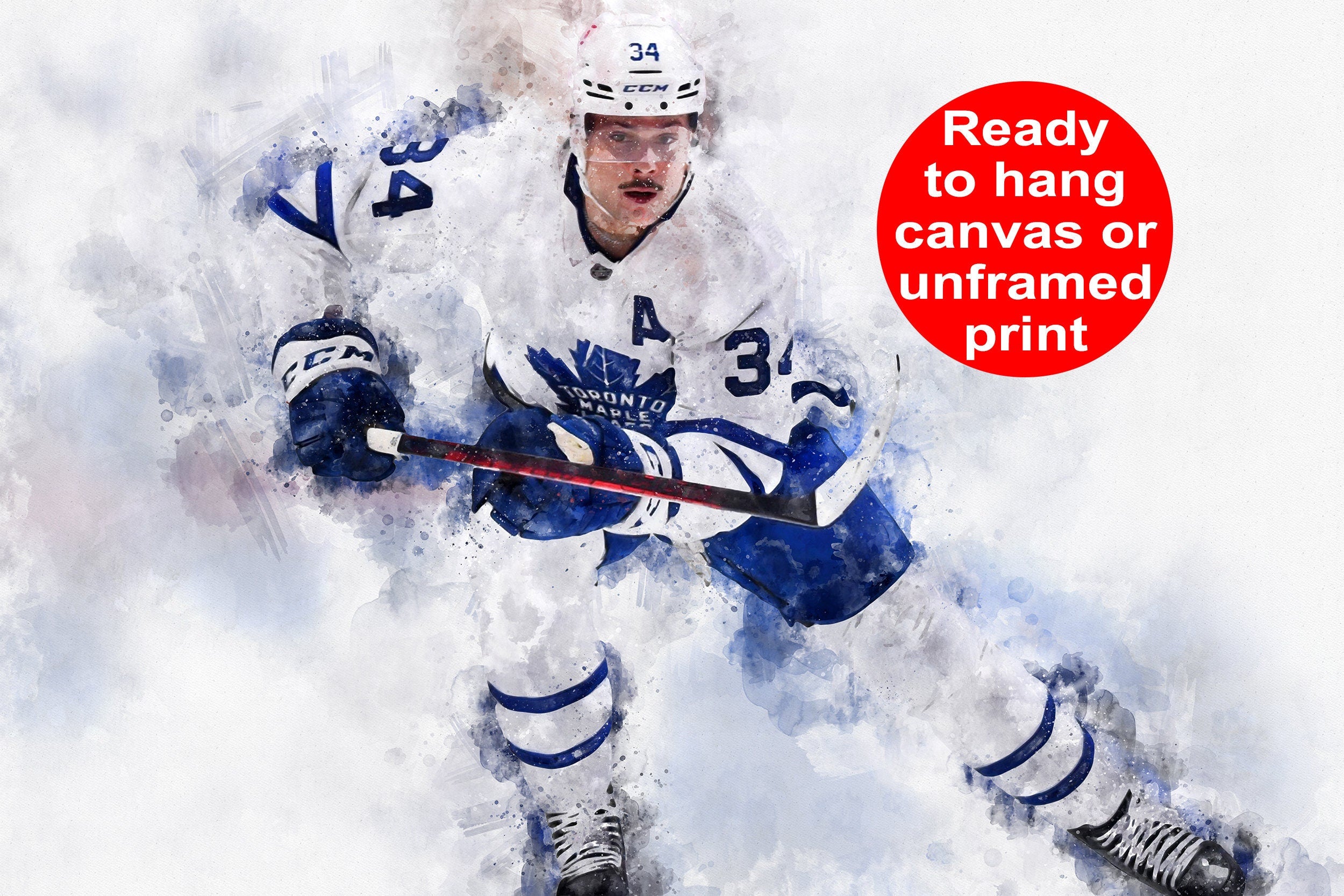 Great for a piece of Auston Matthews wall art. Available in several sizes as an unframed print or a ready to hang mounted canvas