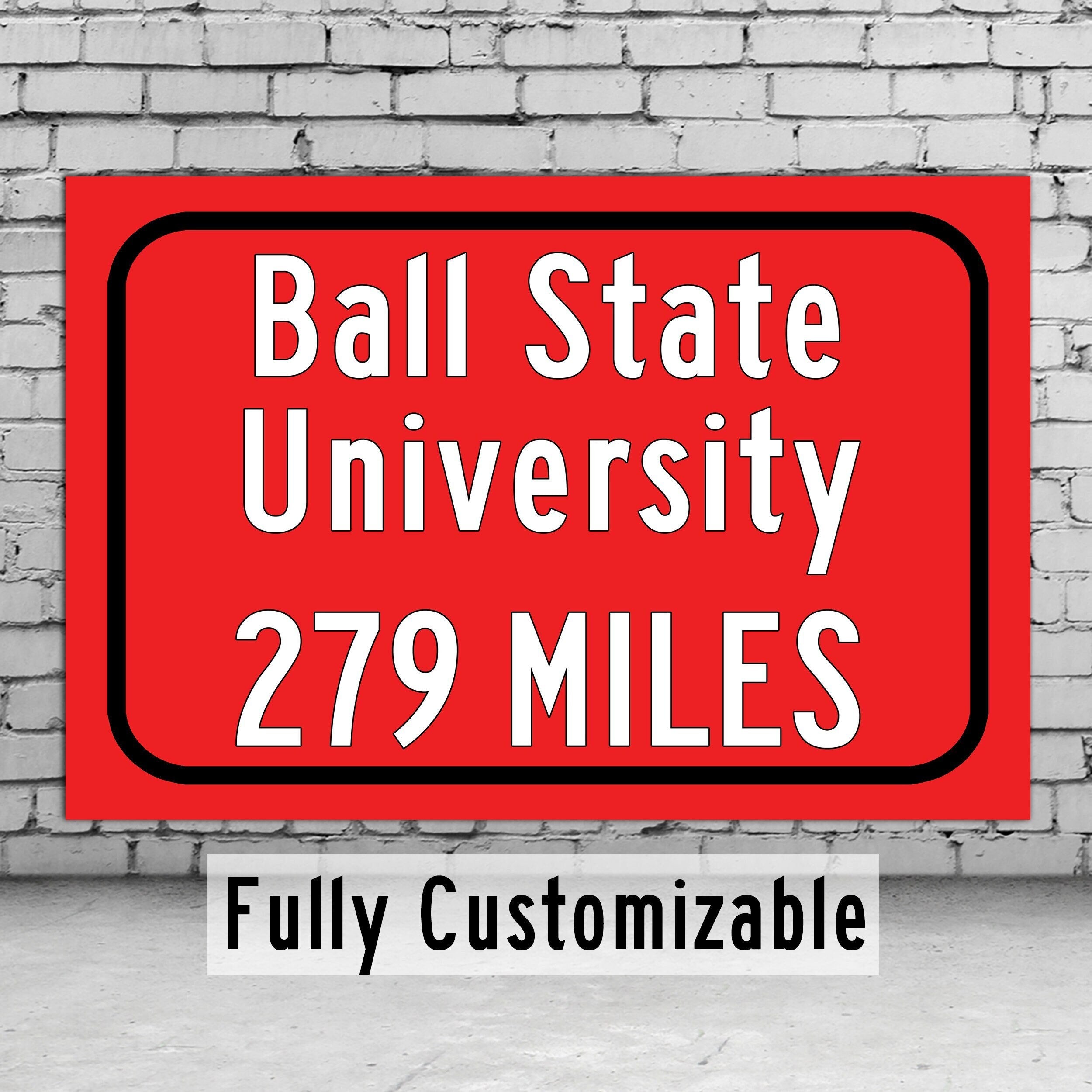 Personalized Highway Distance sign to Ball State University / Ball State Cardinals / Munice Indiana /