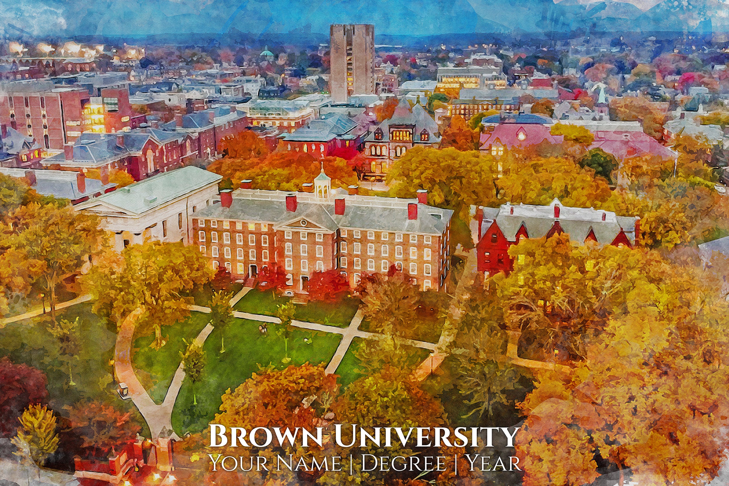 Brown University watercolor canvas fine art prints Graduation gift, Brown University , College wall art,
