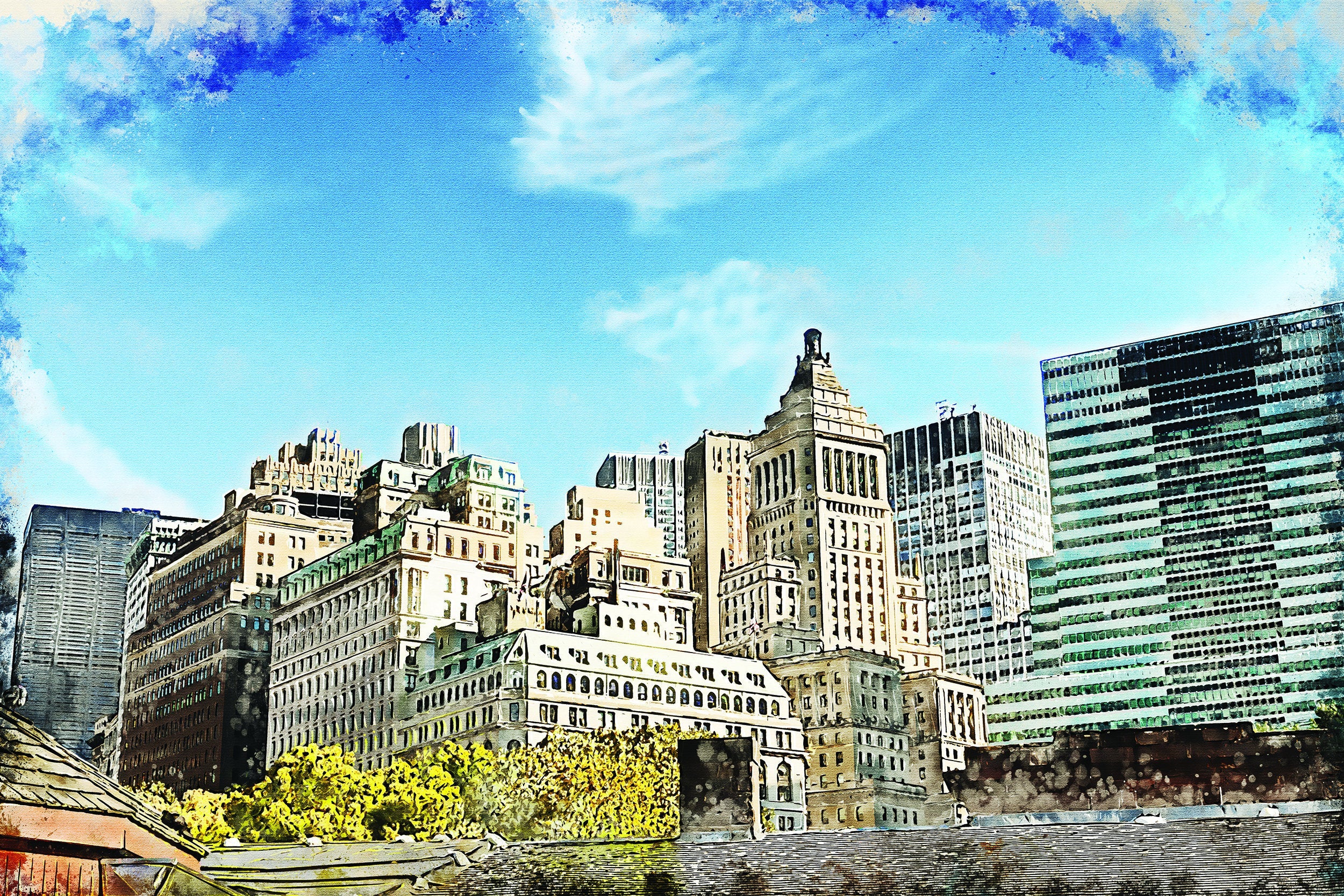 The beautiful watercolor of Buffalo NY on canvas framed and ready to hang. Stunning colors that make for the perfect wall decor. Buffalo watercolor