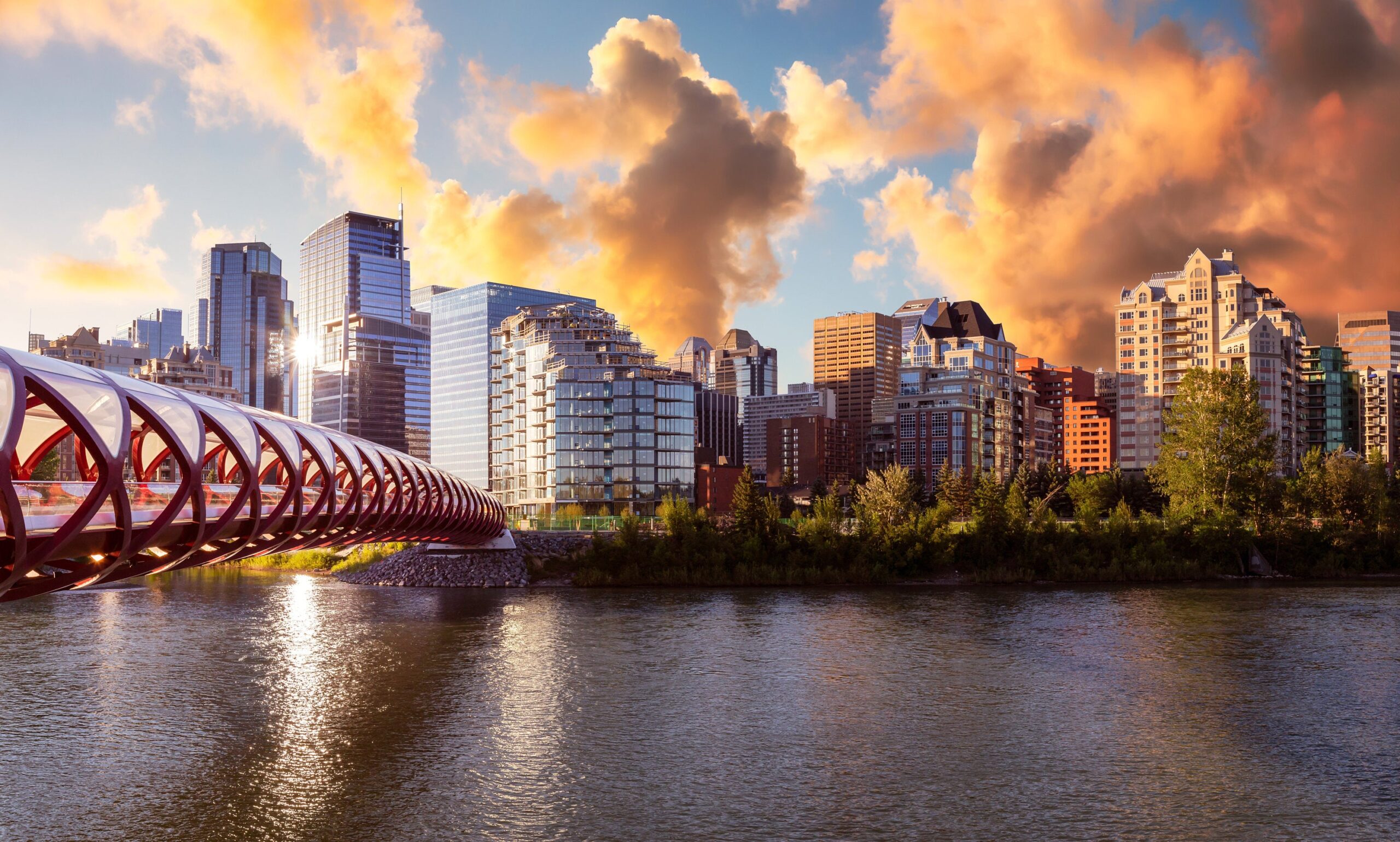 Stunning Photo of the Peace Bridge Calgary Canada skyline. Great for a piece of wall art. Available as a single canvas at 16″ x 24″ , 24″ x 36″ , or 32″ x 48″ or a 3 panel version that is larger Calgary skyline canvas