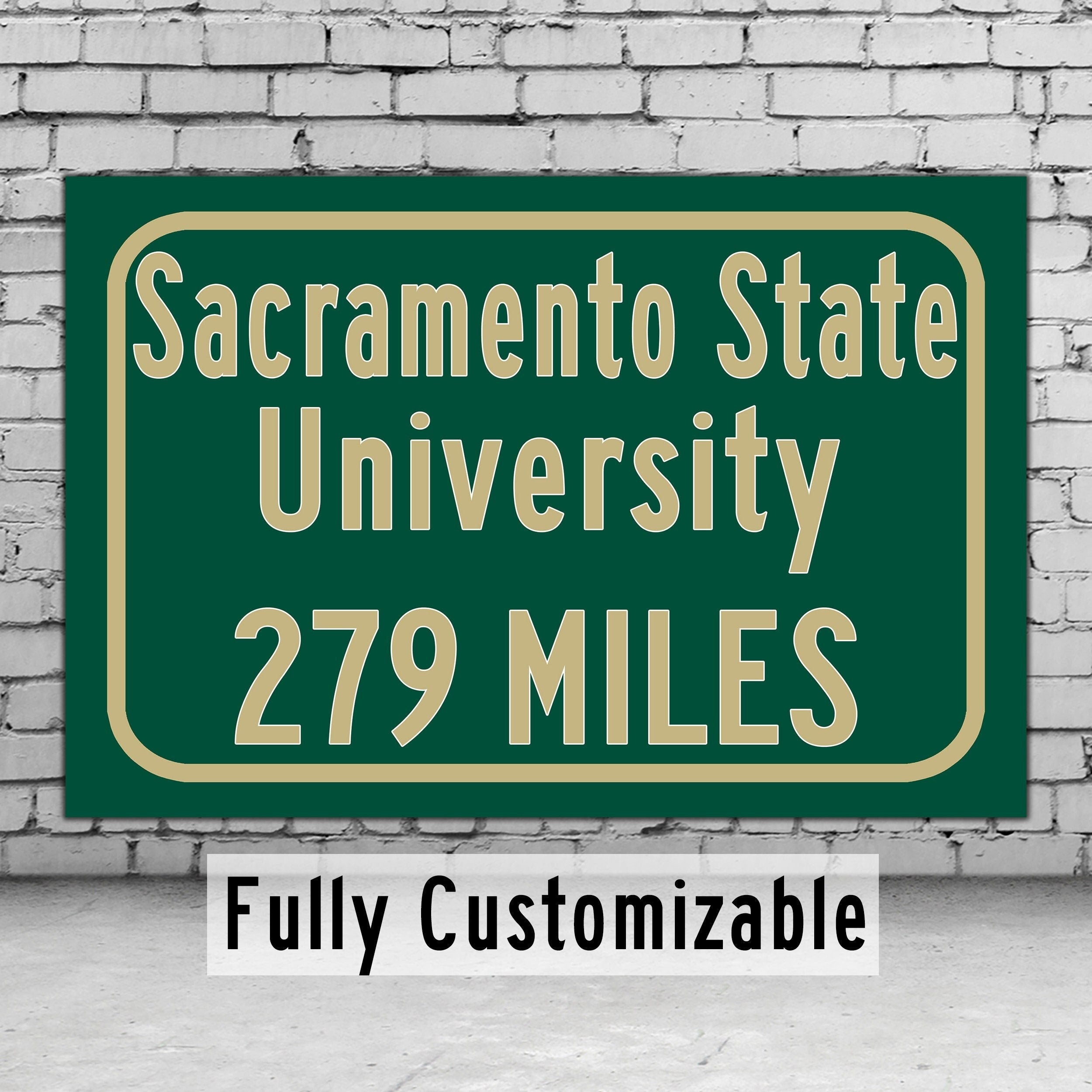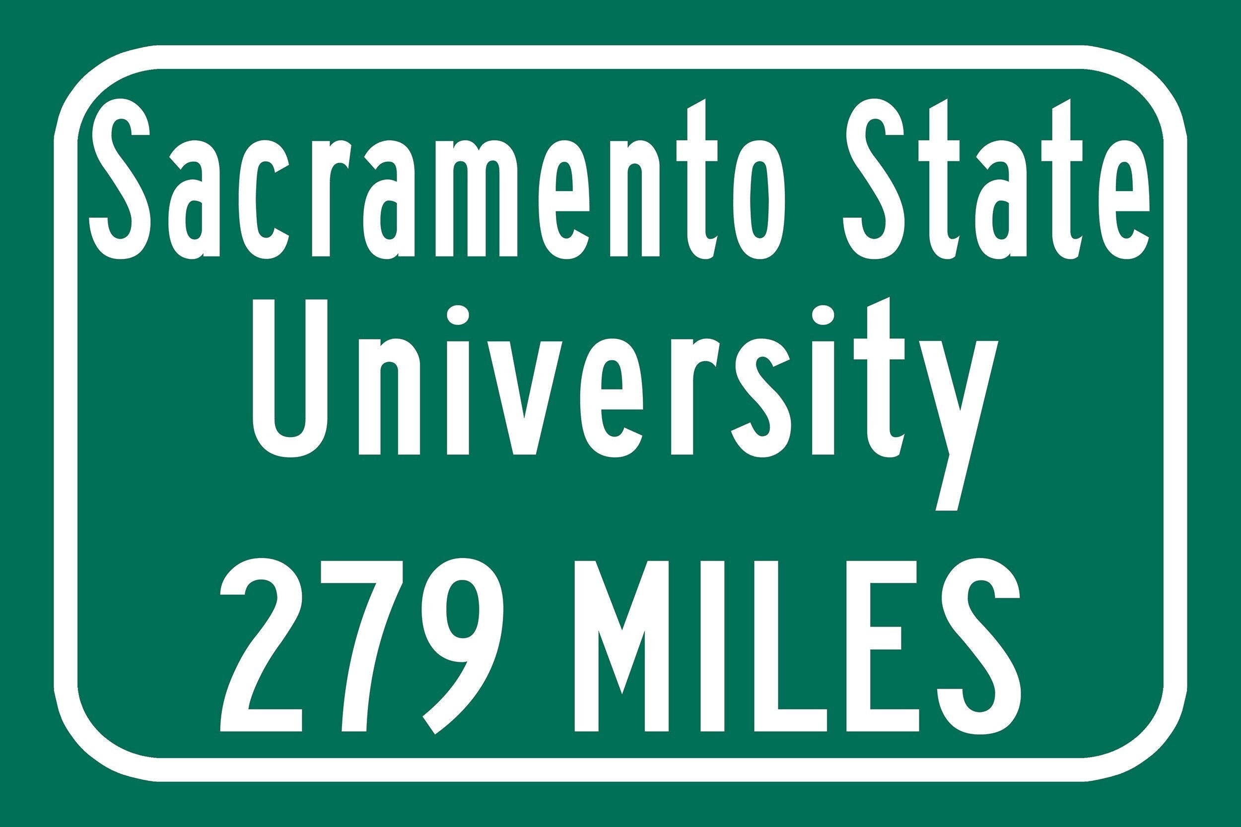 Personalized Highway Distance sign to California State University, Sacramento / California State University, Sacramento sign. California State University, Sacramento Hornets /