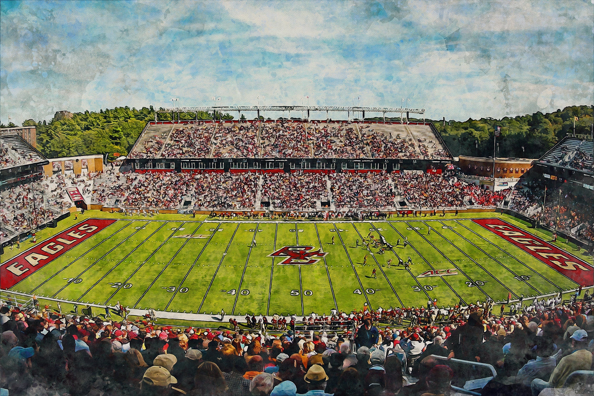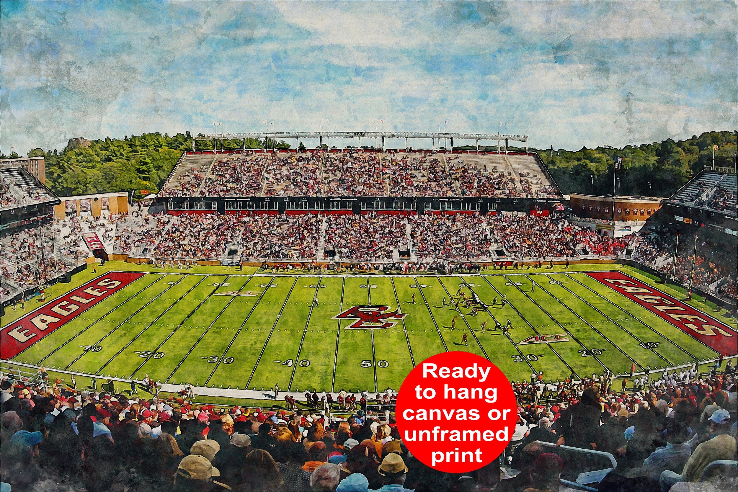 Canvas-Print of Boston College Eagles, Alumni Stadium , Watercolor Digital Sketch Print Canvas Print, Boston College, Boston Massachusetts