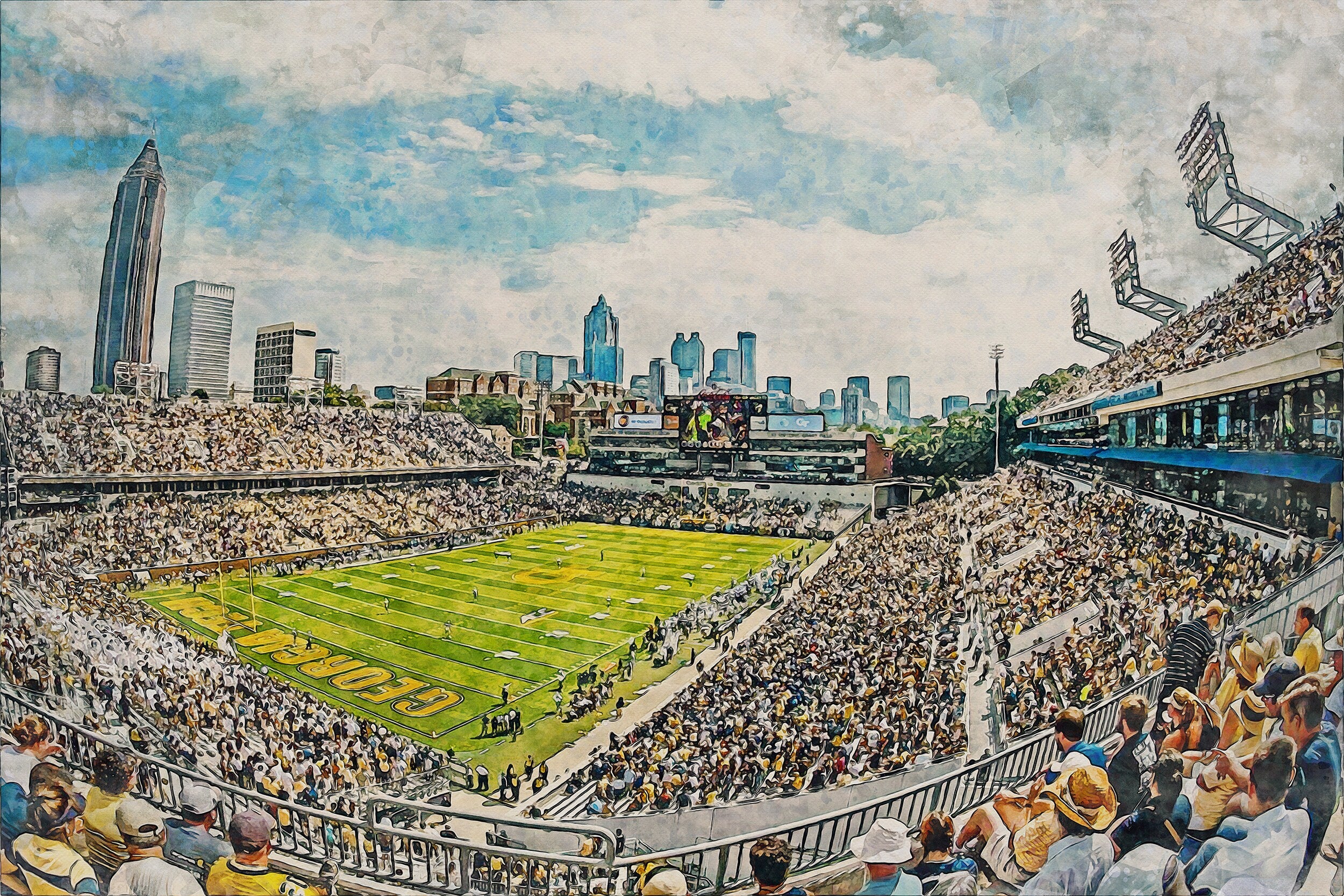 Beautiful Digital watercolor of Bobby Dodd Stadium at Georgia Tech.