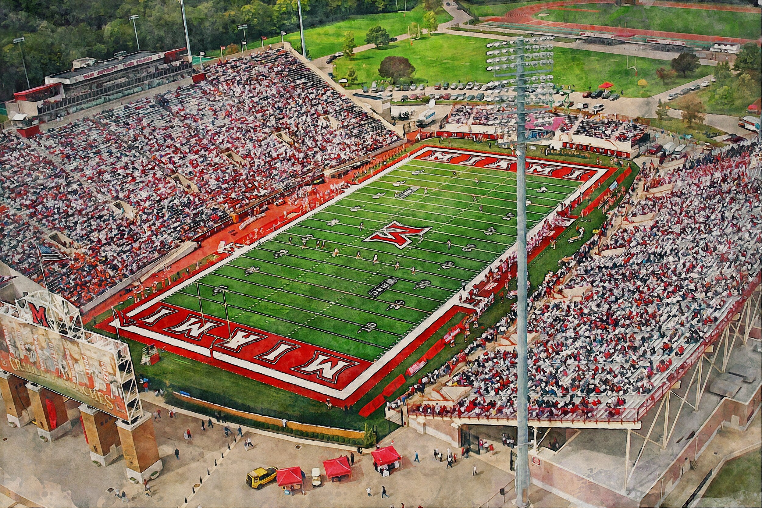 Beautiful Digital watercolor of Yager Stadium at Miami University