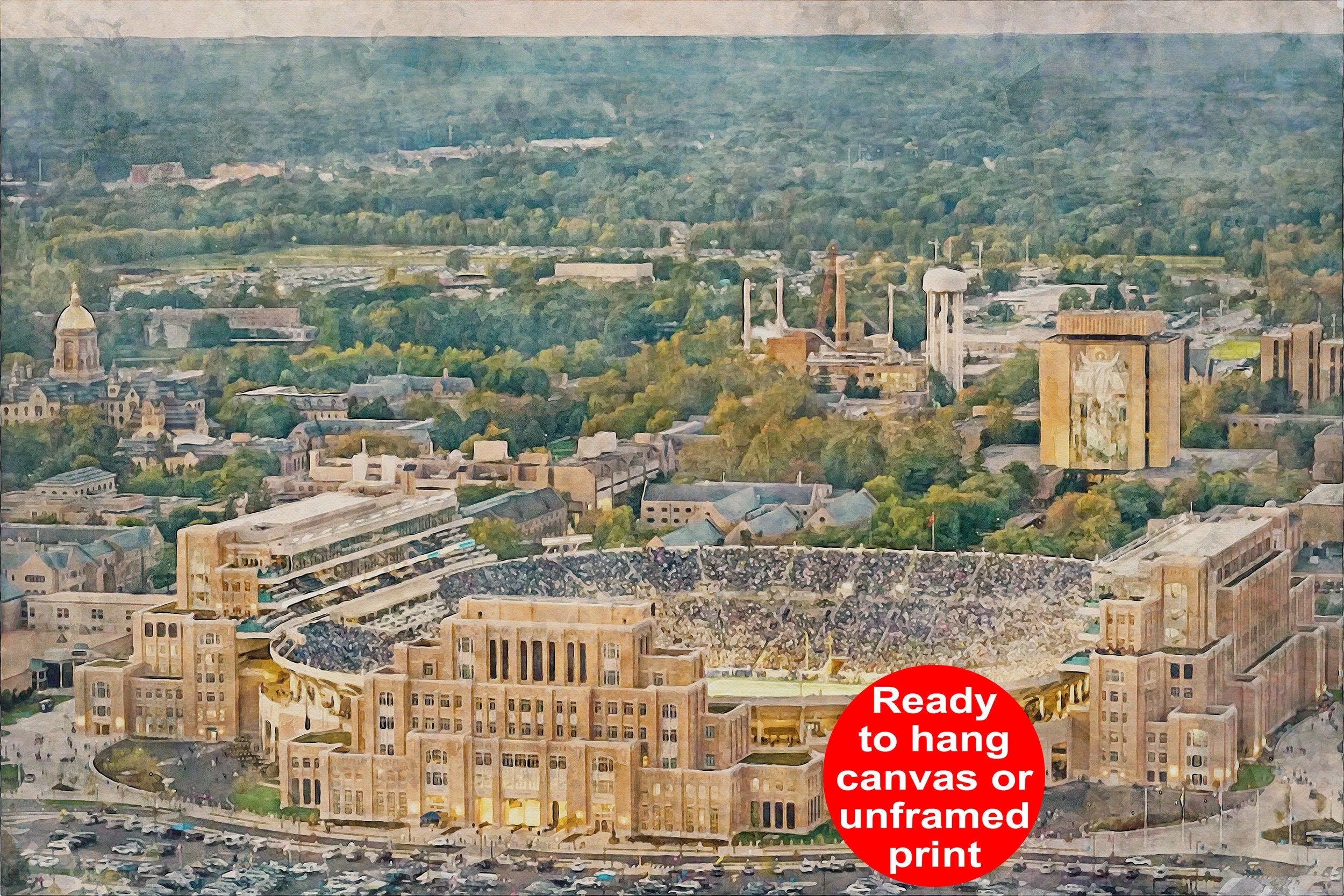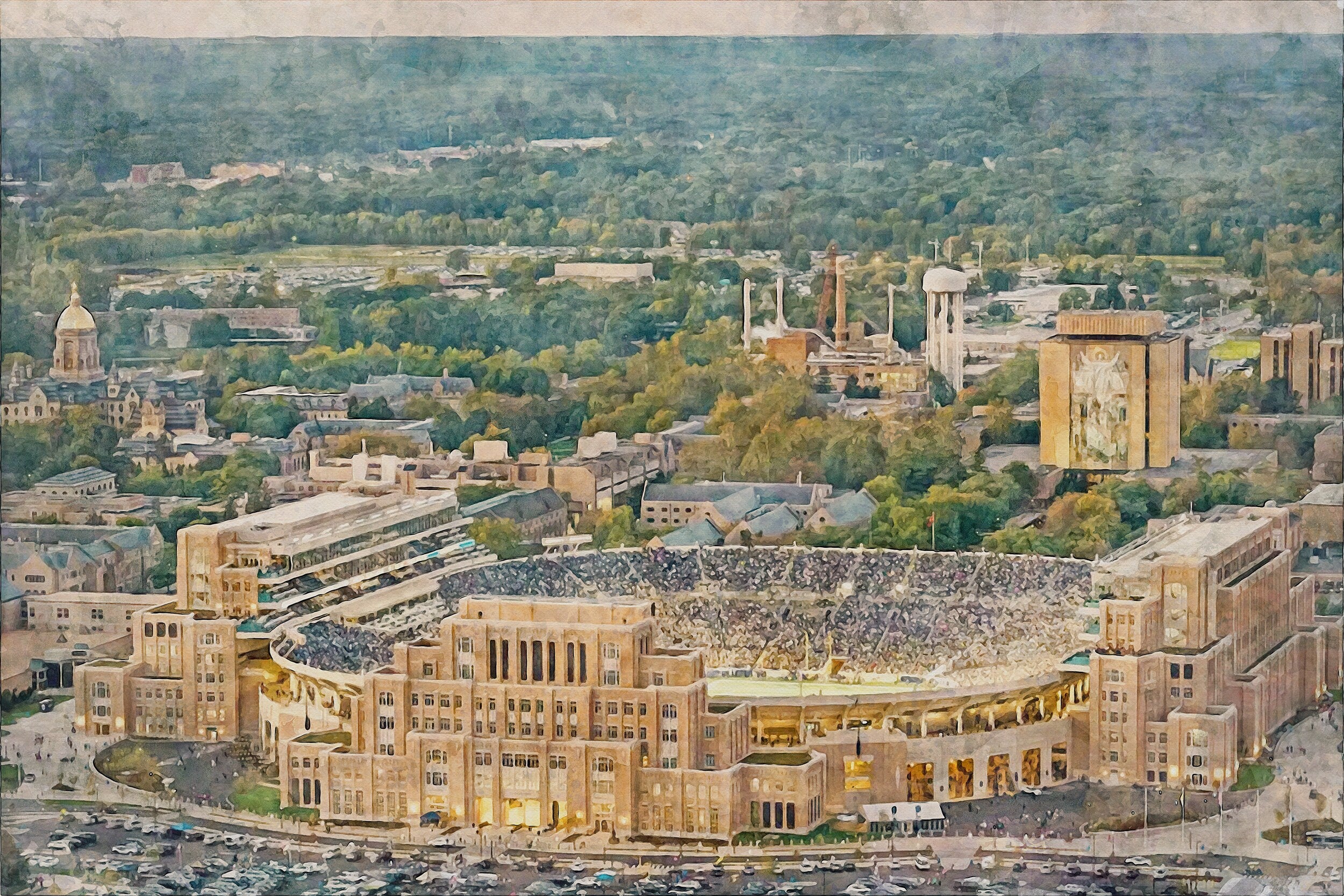 Beautiful Digital watercolor of Notre Dame Stadium in Notre Dame Indiana
