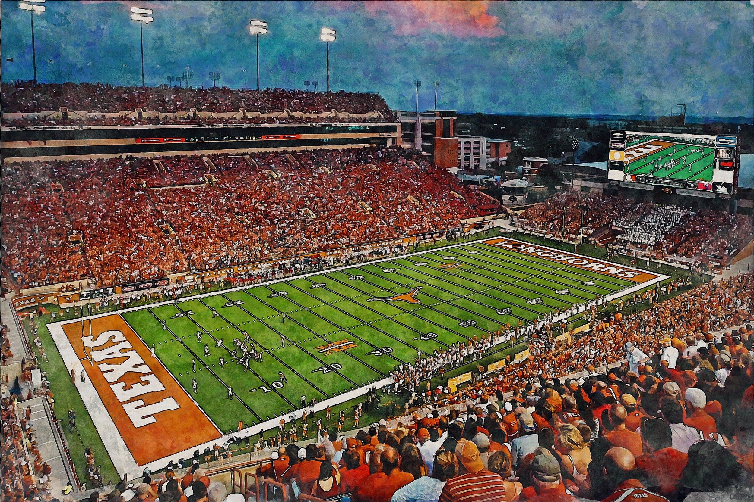 Beautiful Digital watercolor of the DKR Texas Memorial Stadium in Austin Texas