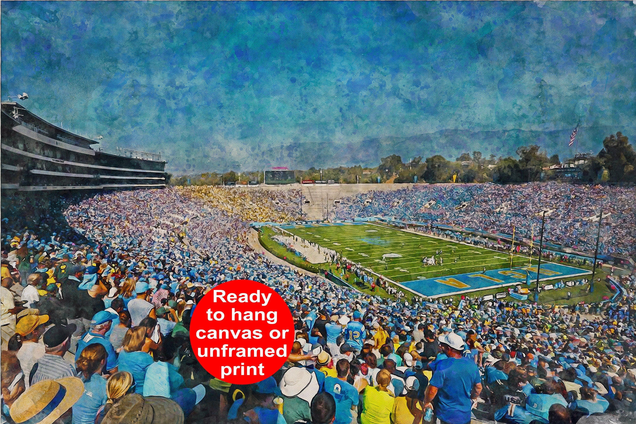 This Rose Bowl Stadium in Los Angeles California is the perfect decor for any home. This print of my digitally custom created wall art will last a lifetime. Rose Bowl Stadium at UCLA Poster