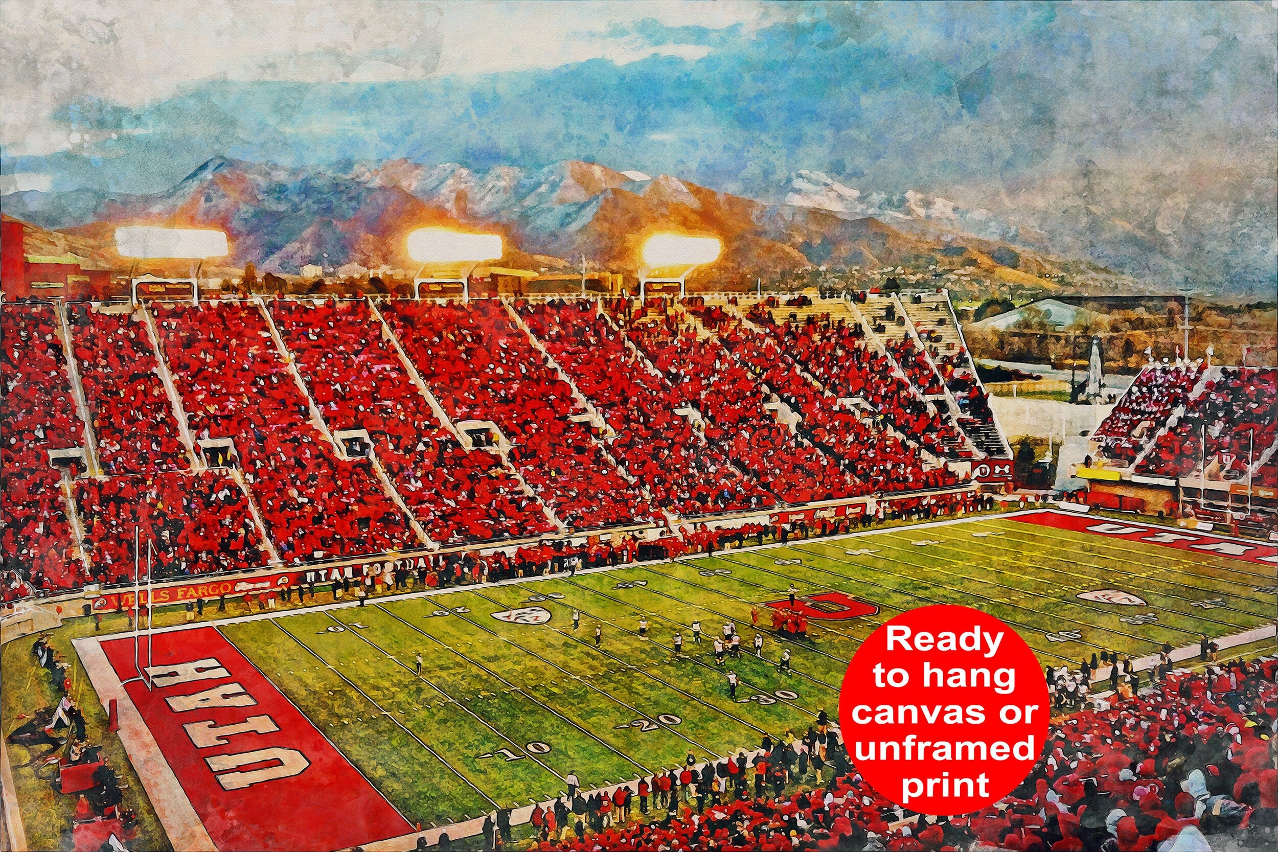 Beautiful Digital watercolor of Rice-Eccles Stadium in Salt Lake City Utah