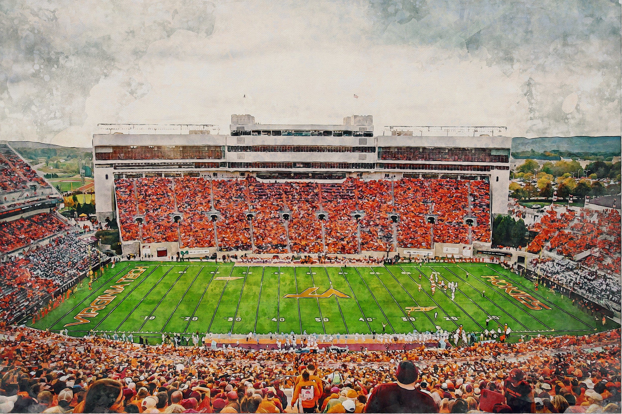 Beautiful Digital watercolor of Lane Stadium in Blacksburg Virginia