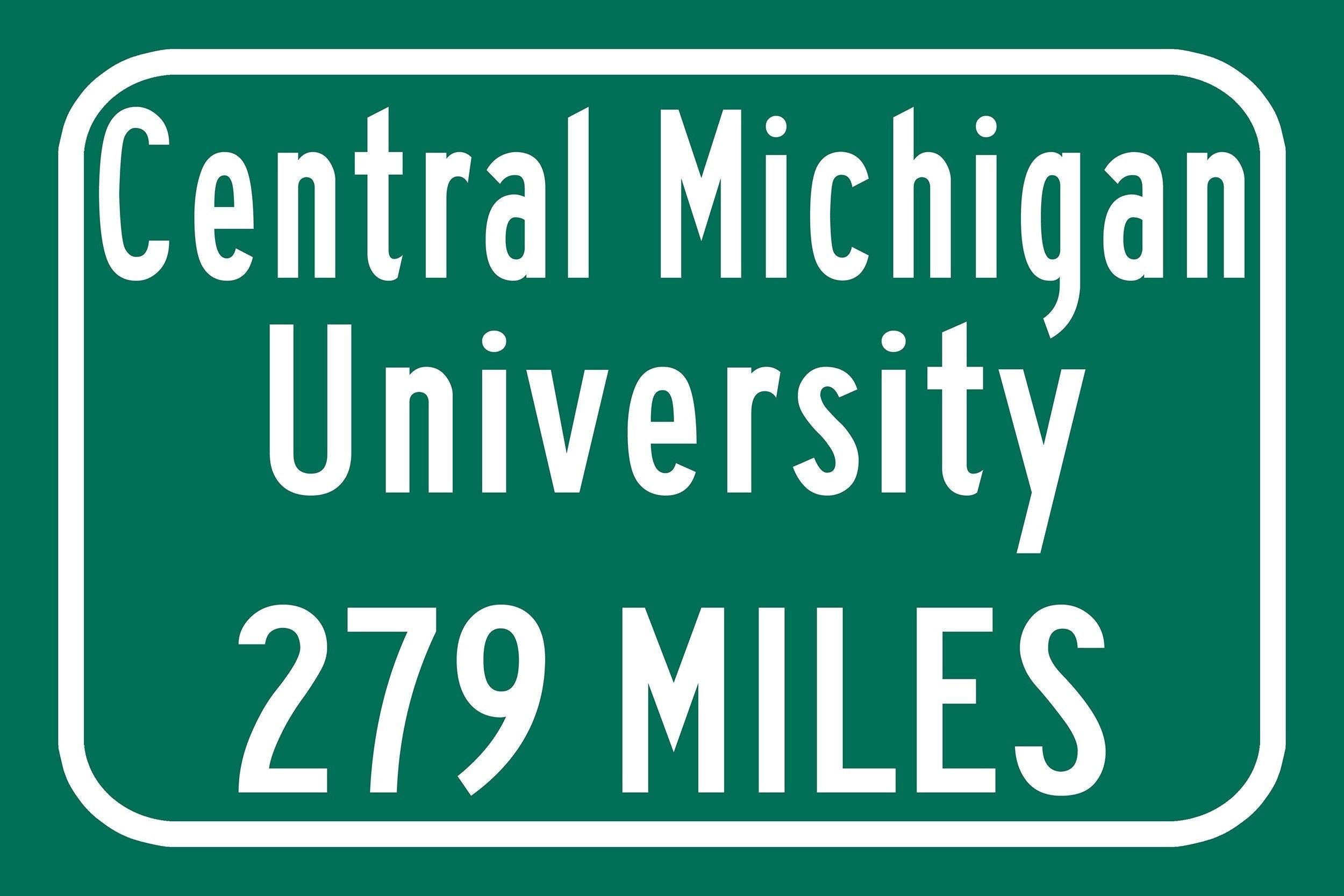 Personalized Highway Distance sign to Central Michigan University / Central Michigan Chippewas / Mount Pleasant Michigan