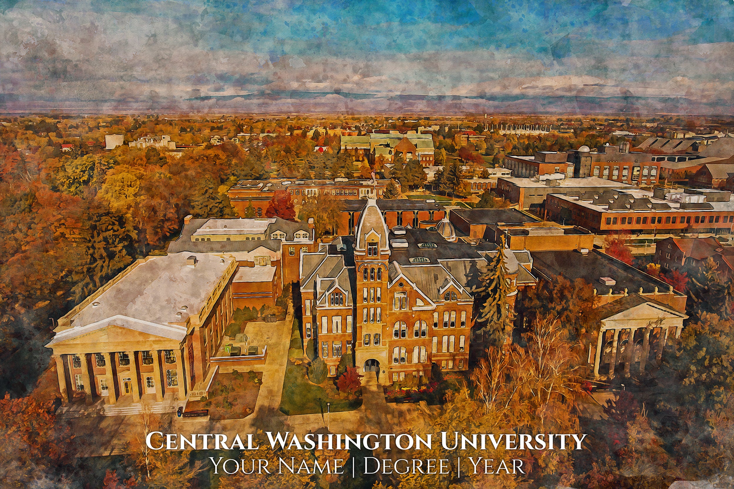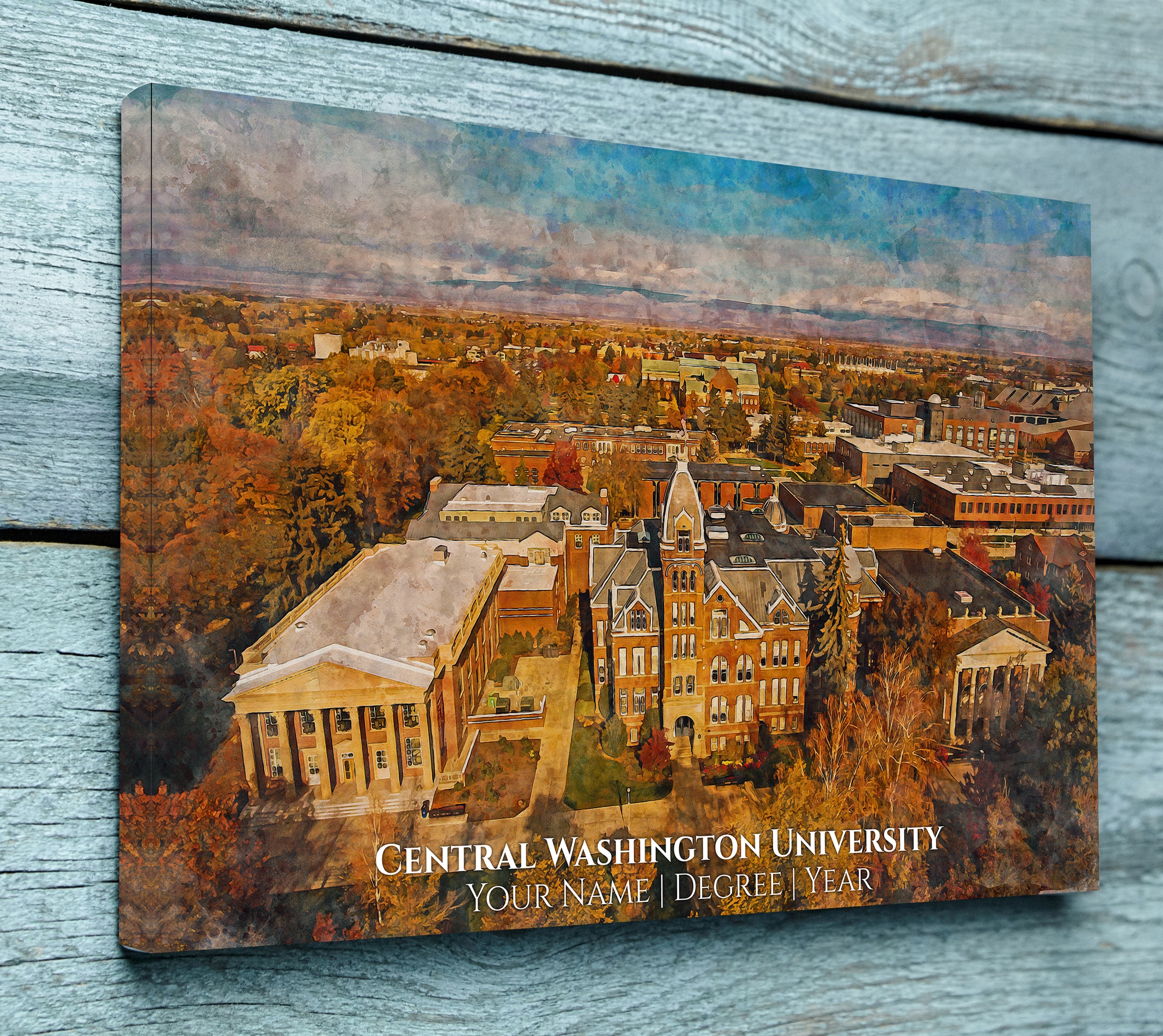Central Washington University watercolor canvas fine art prints. Graduation gift, Central Washington University , College wall art,