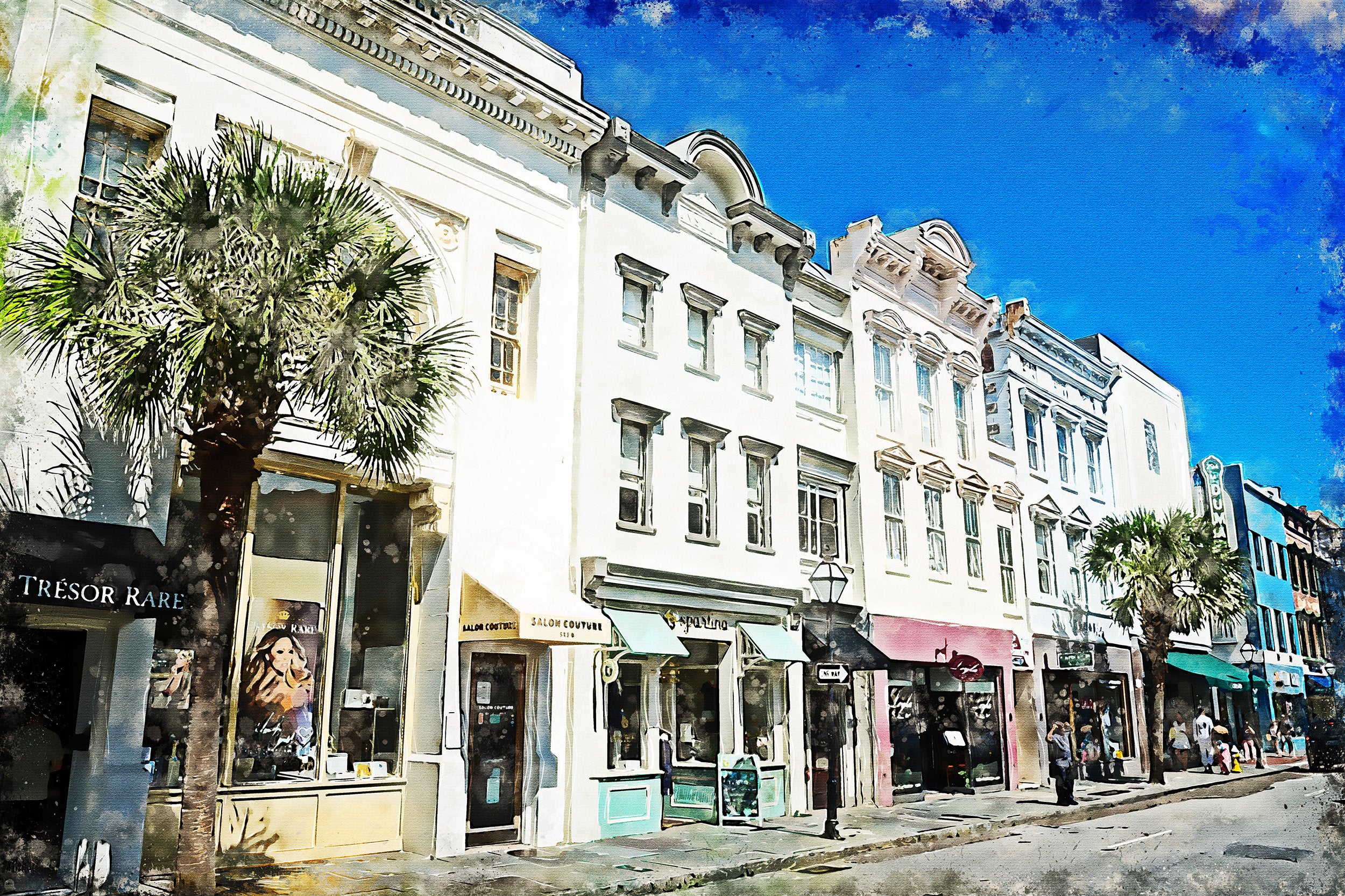 Stunning steet watercolor in Charleston South Carolina. Charleston watercolor canvas. Great for a piece of wall art. Available as a single canvas at 16″ x 24″ , 24″ x 36″ , or 32″ x 48 or a beautiful 3 panel set that is 4.5 feet x 3 feet or if you prefer, a digital download and you can print it your self. (no physical product sent)