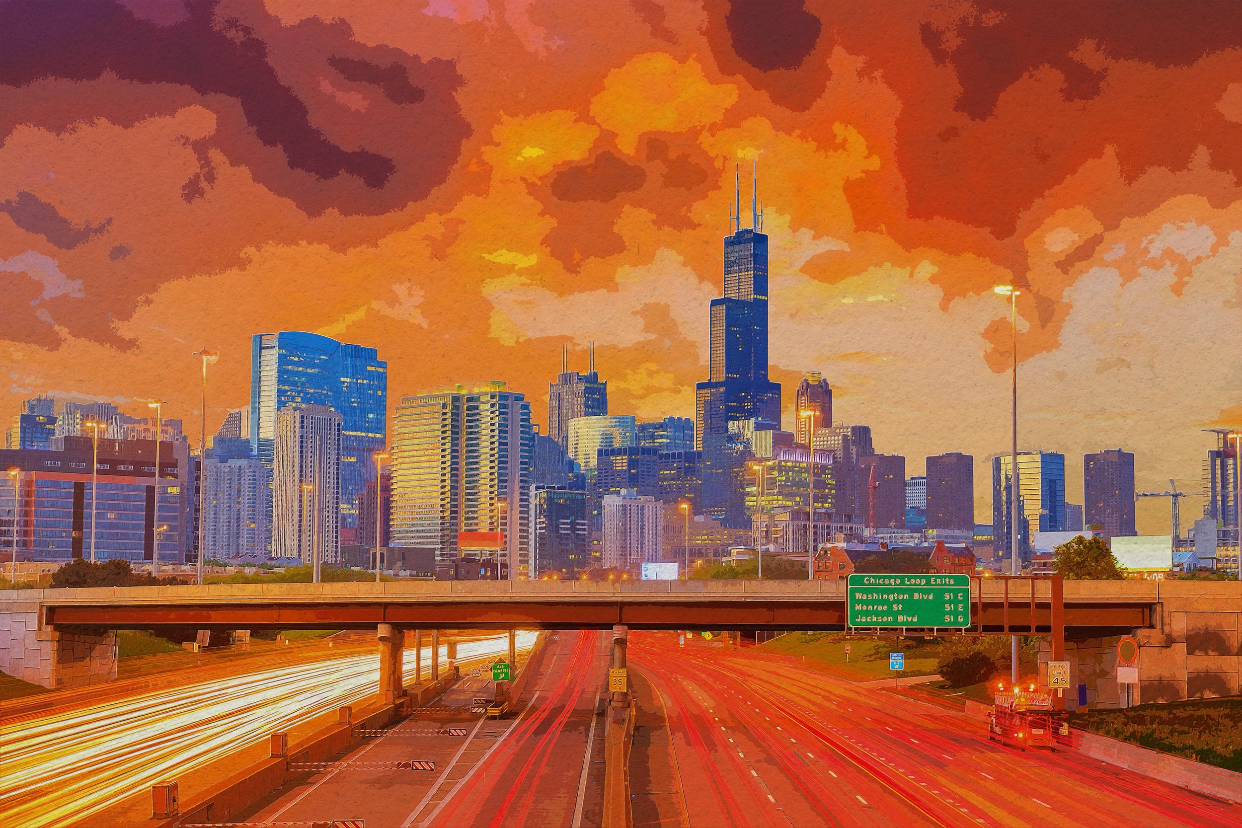 Stunning Watercolor of the Chicago skyline on canvas Great for a piece of wall art. Available as a single canvas at 16″ x 24″ , 24″ x 36″ , or 32″ x 48″ or we can make you a special 3 panel work of art as large as 4 x 8 foot wide. Chicago watercolor
