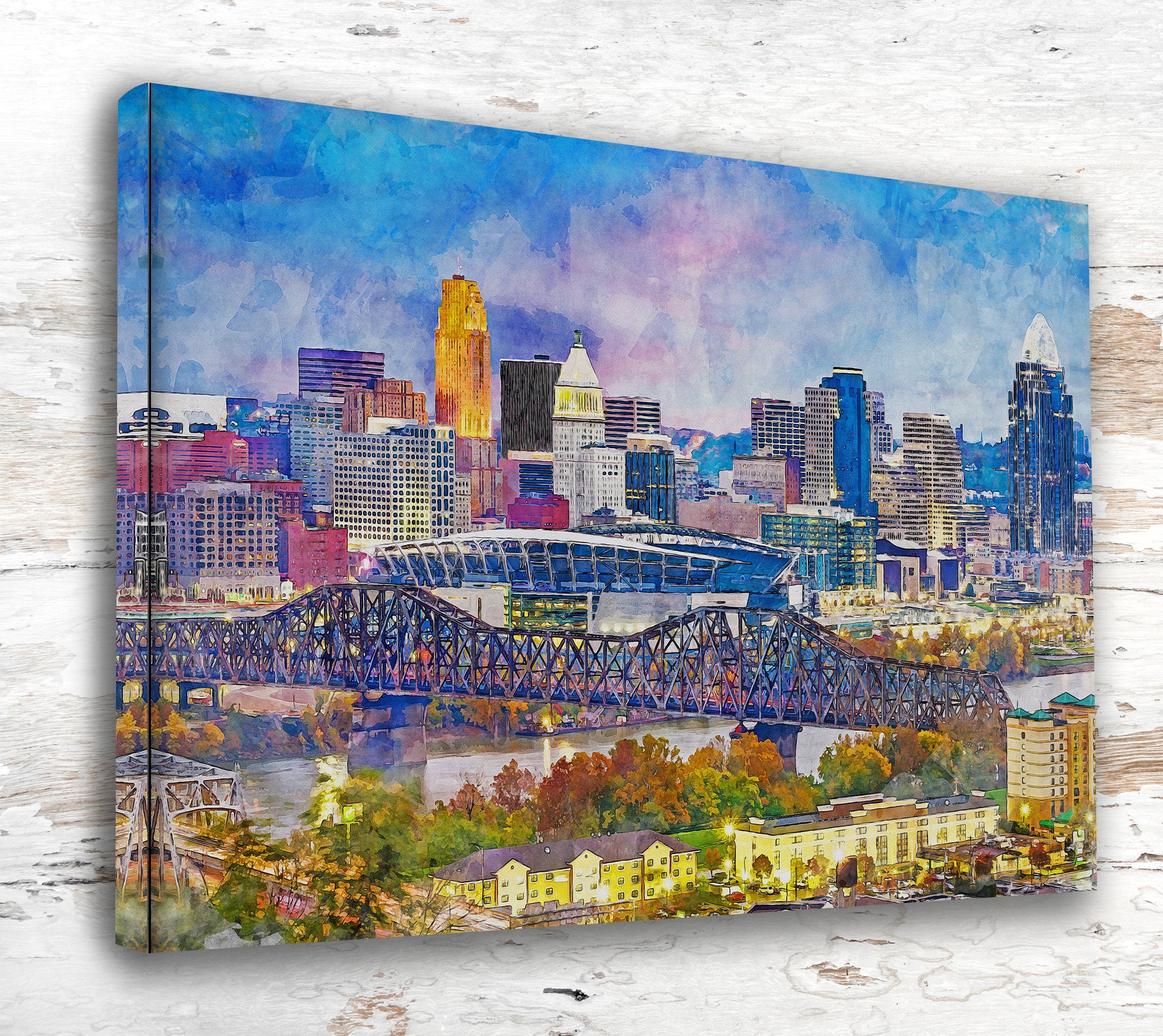Beautiful Great American Ballpark in Cincinnati Ohio canvas watercolor print. This lovely piece of digitally created Cincinnati Ohio wall art is perfect for any room in your home. Great American Ball Park is one of the most beautiful stadiums in the country. Perfect for the Cincinnati Reds fan in the house