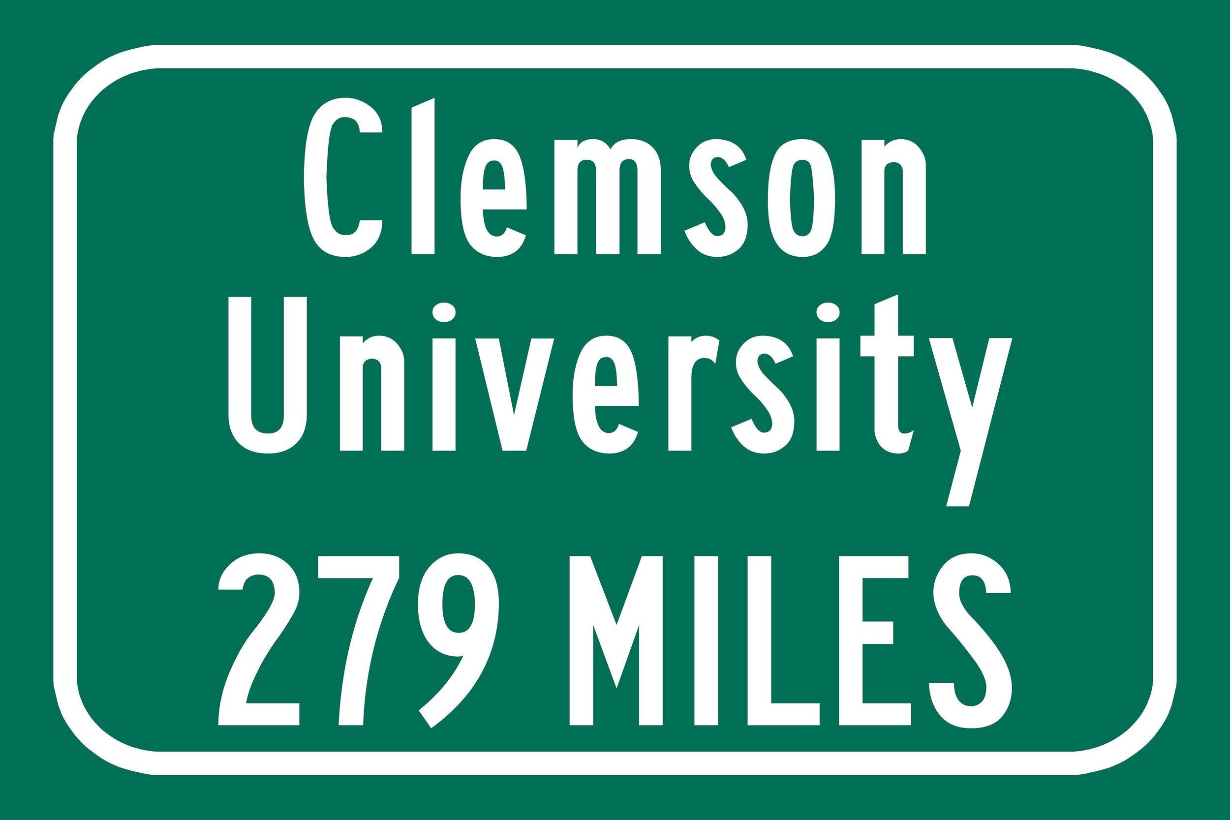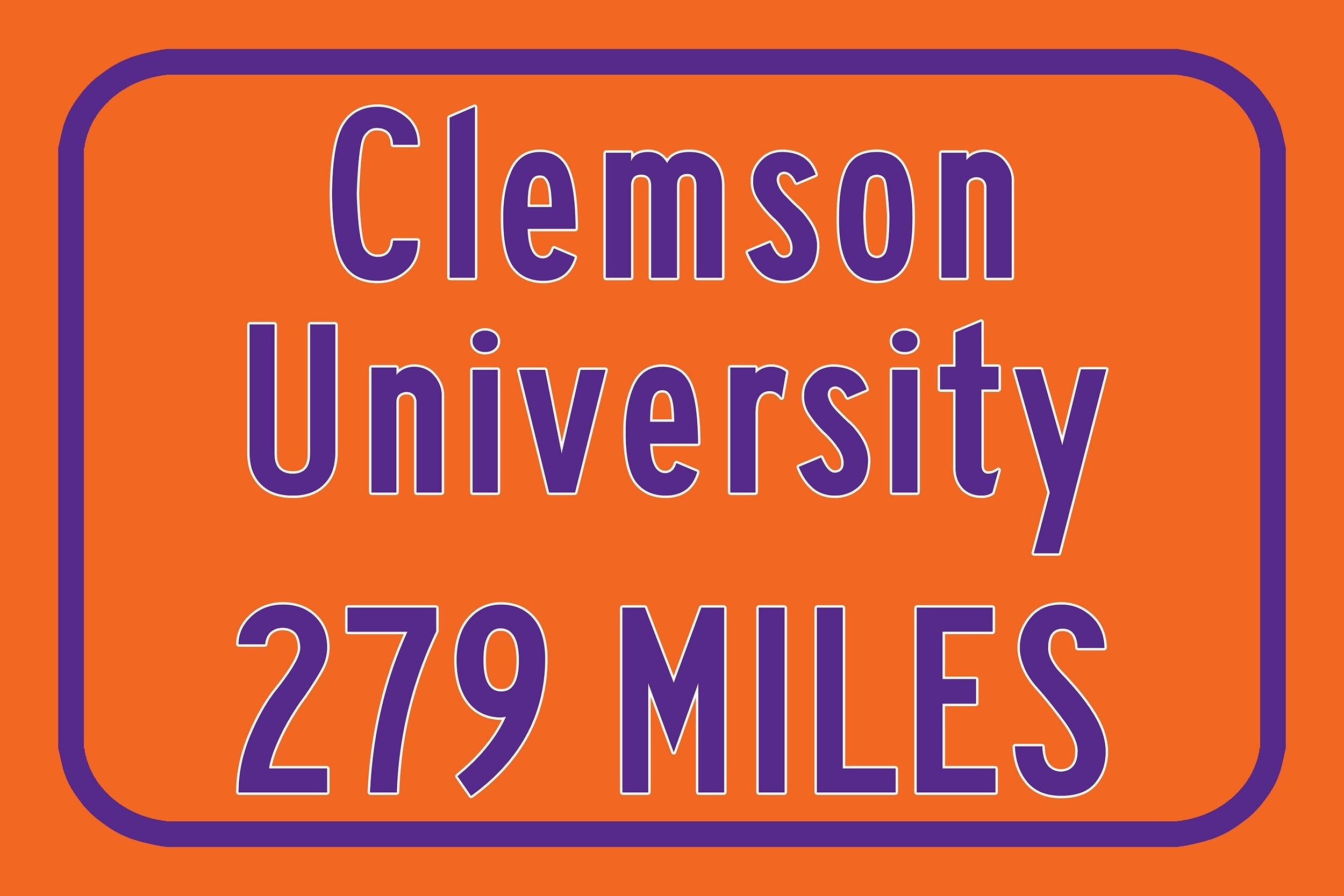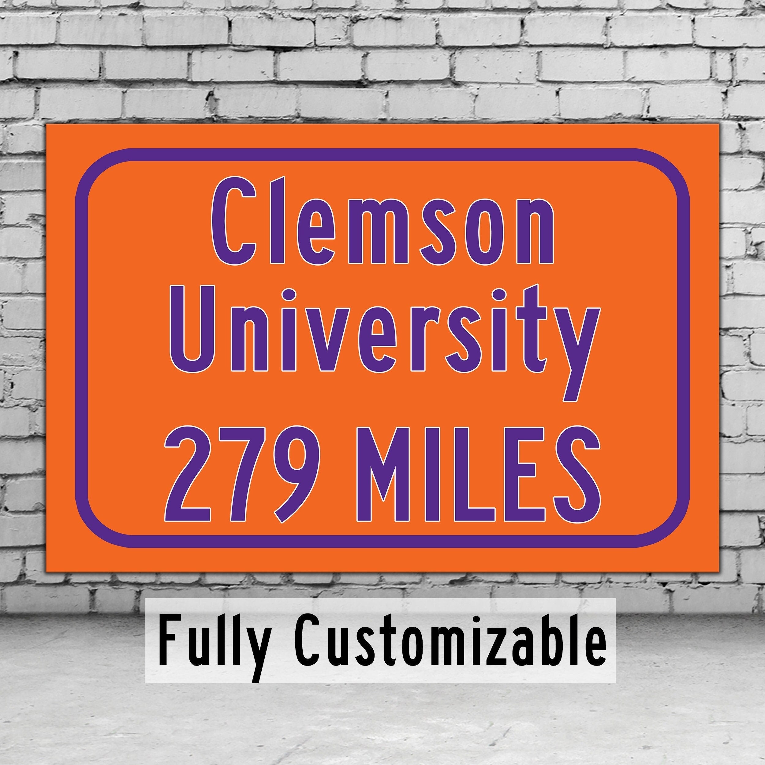 Personalized Highway Distance sign to Clemson University. Clemson University sign. Clemson Tigers sign.