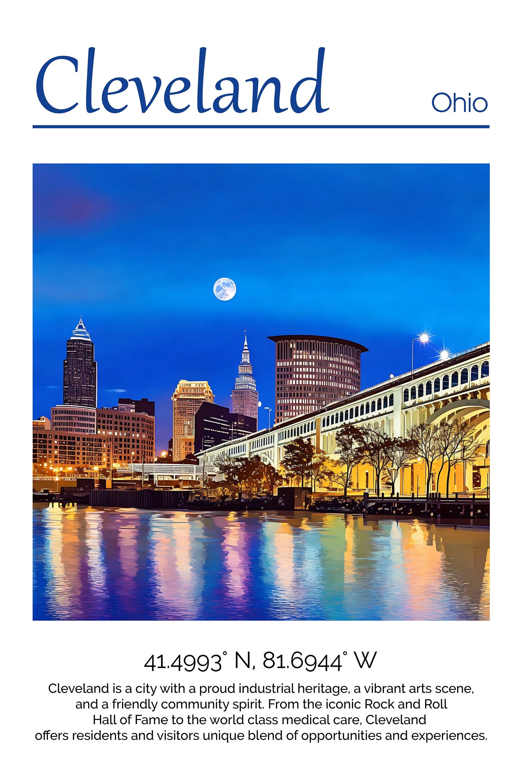 Introducing our Cleveland Ohio travel art canvas print b the perfect addition to your wall art collection and home decor! Show off your love for the city with this stunning Cleveland print that captures the essence of this vibrant and historic city.