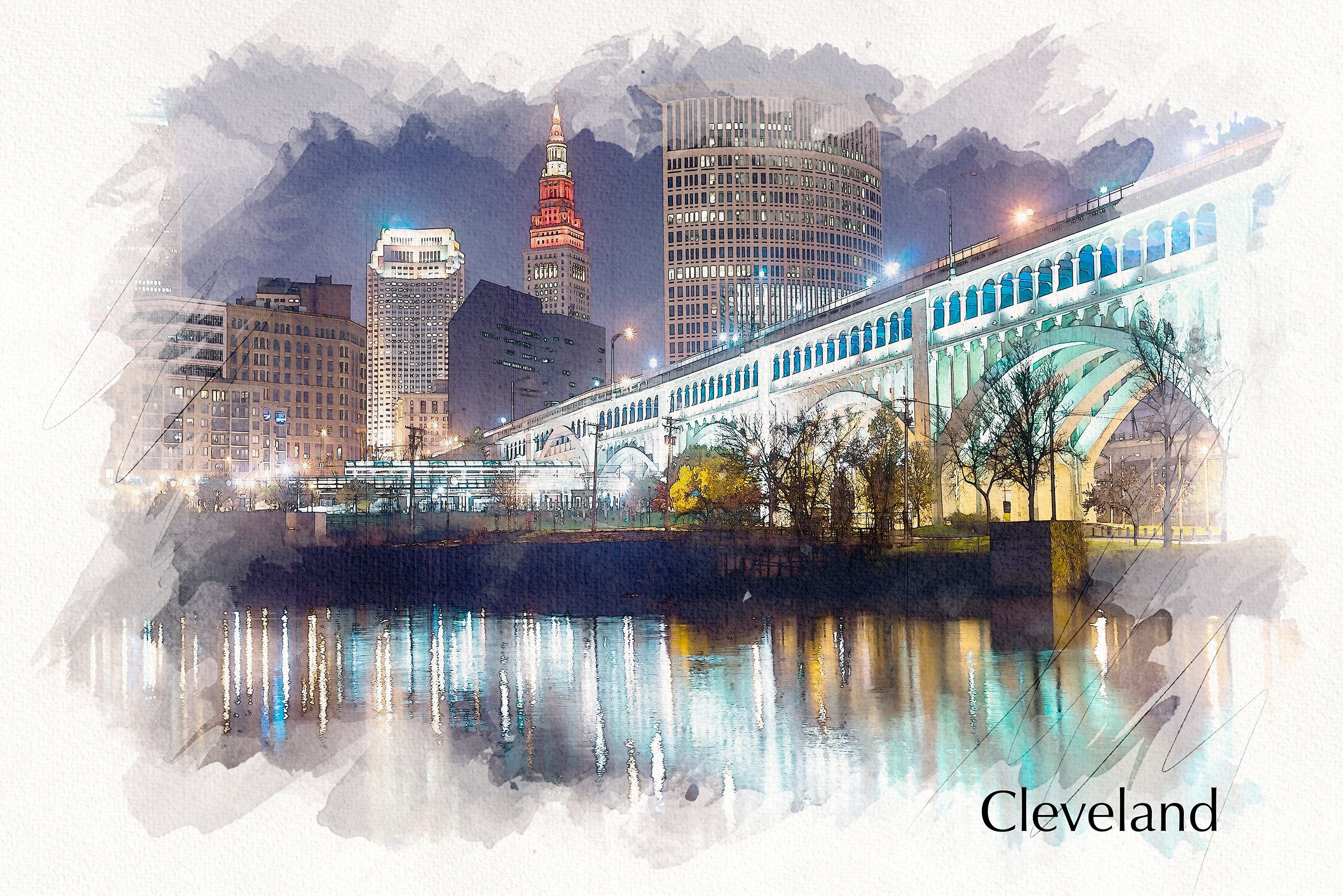 Cleveland watercolor art, Cleveland Print, Cleveland skyline