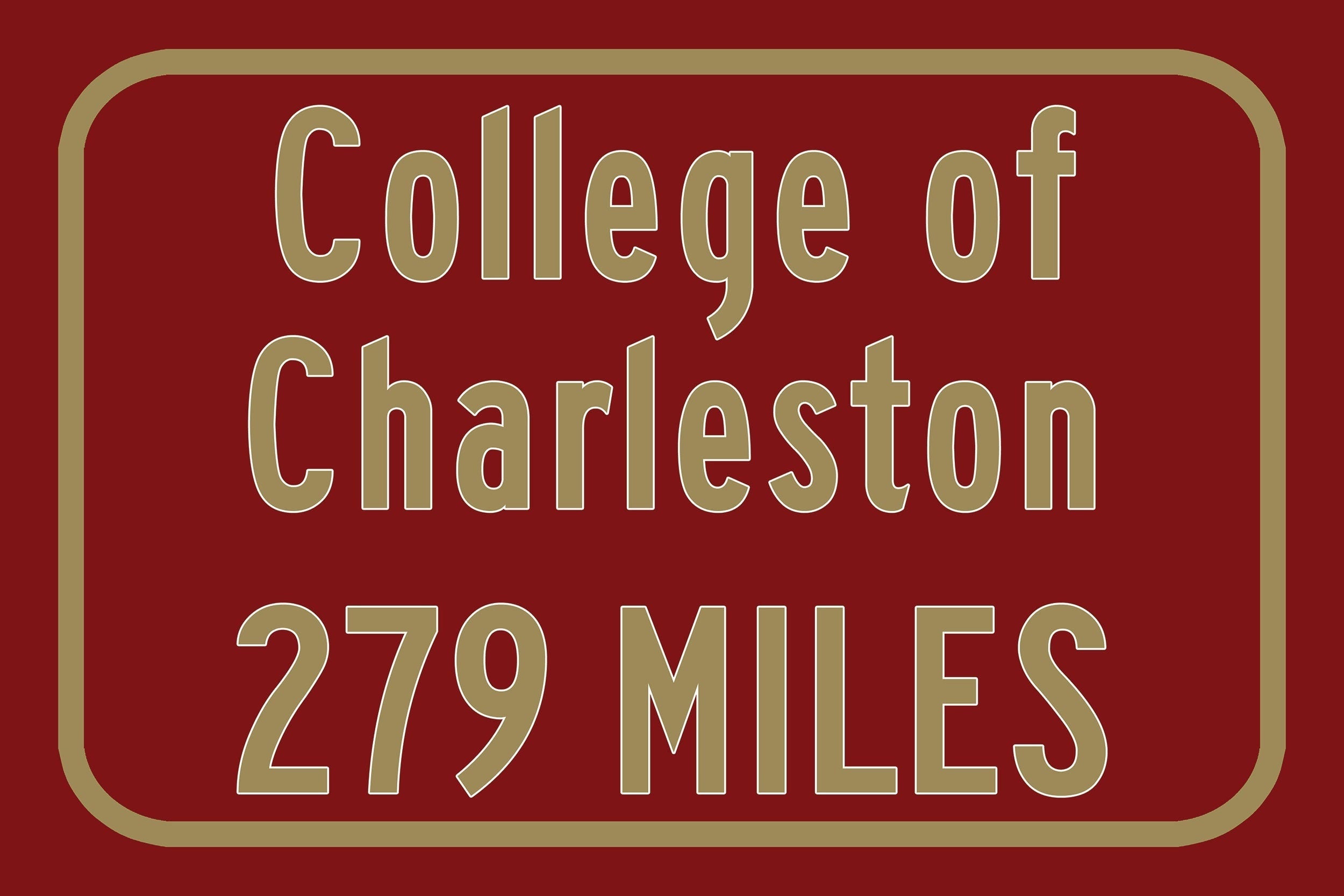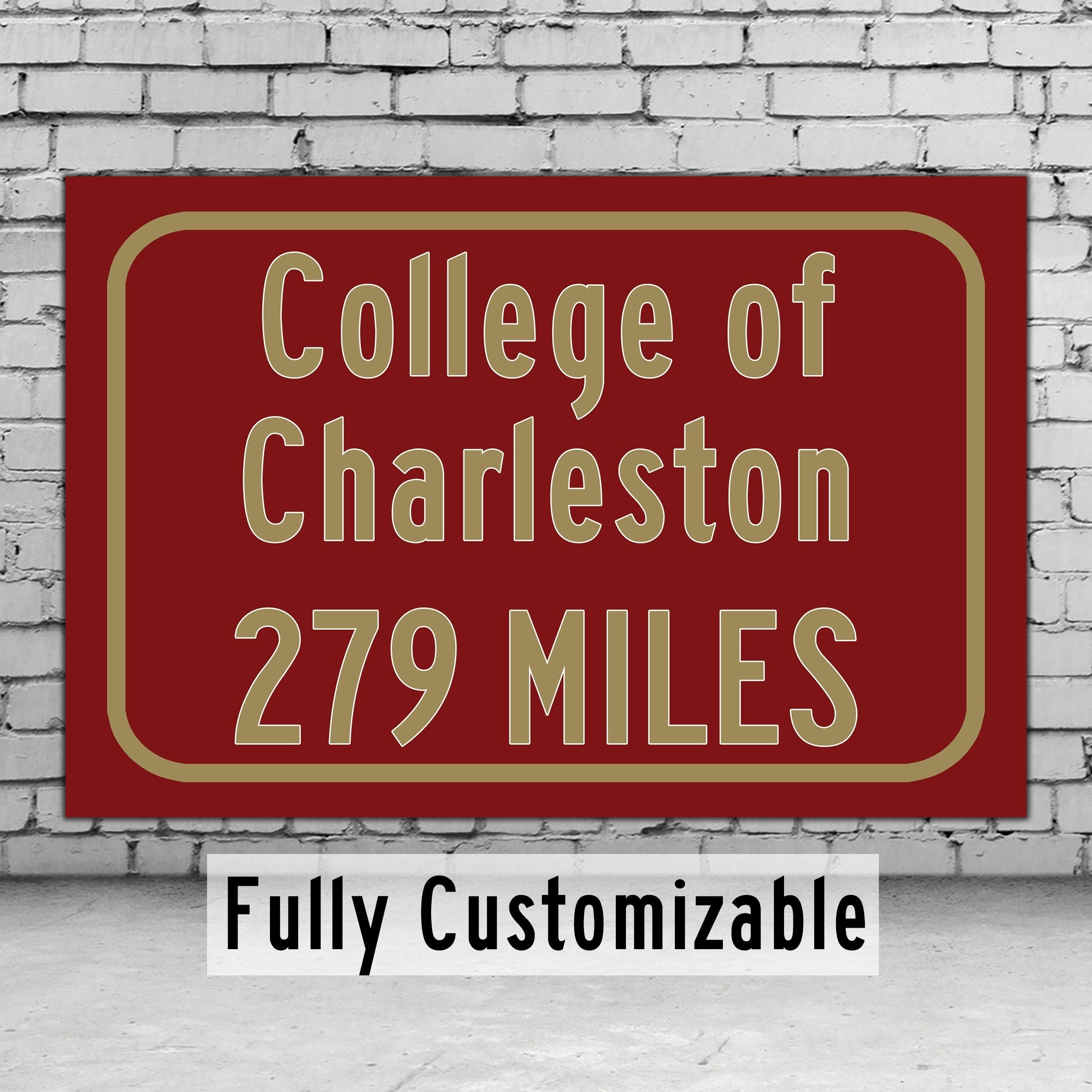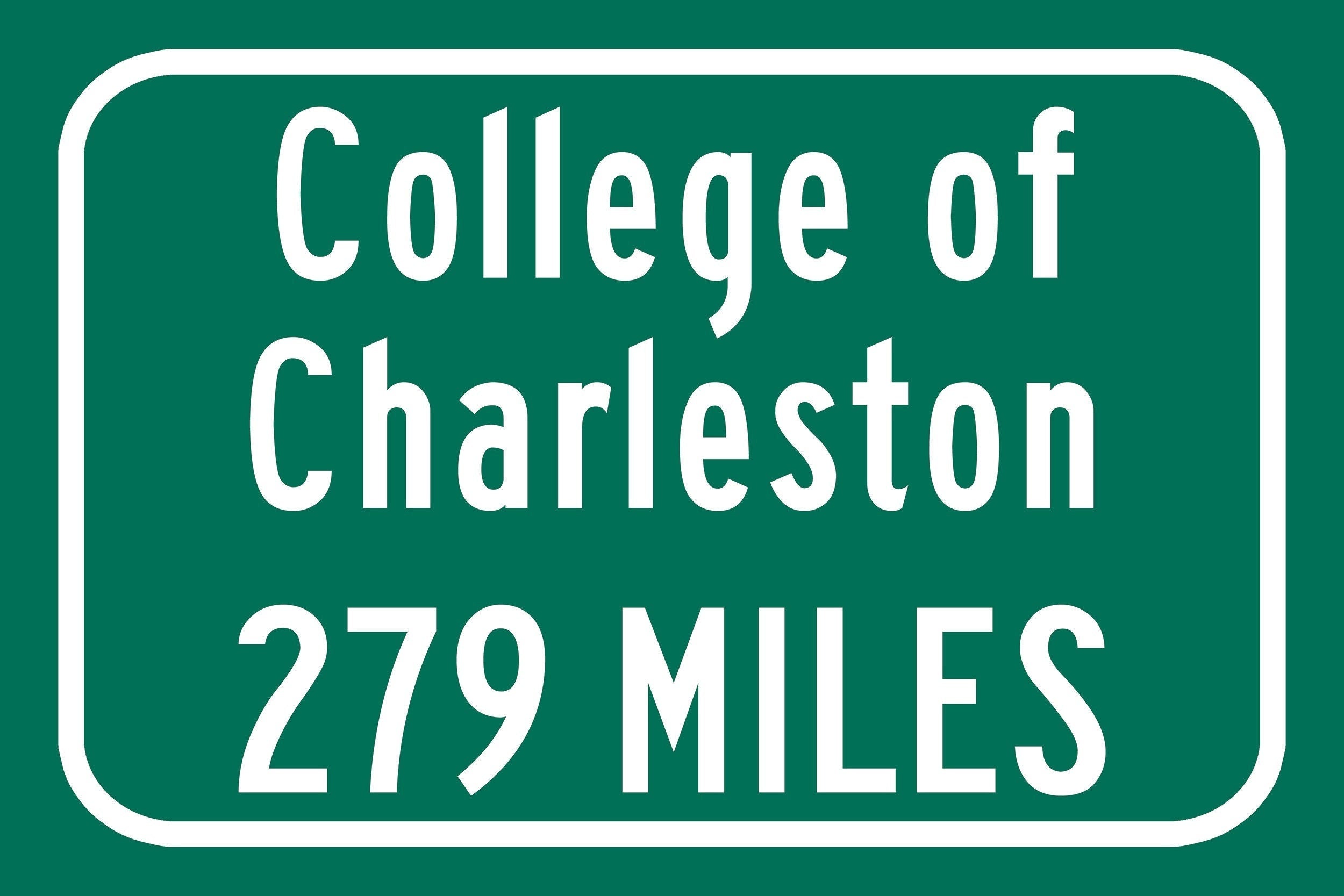 Personalized Highway Distance sign to College of Charleston / Charleston Cougars / Charleston South Carolina