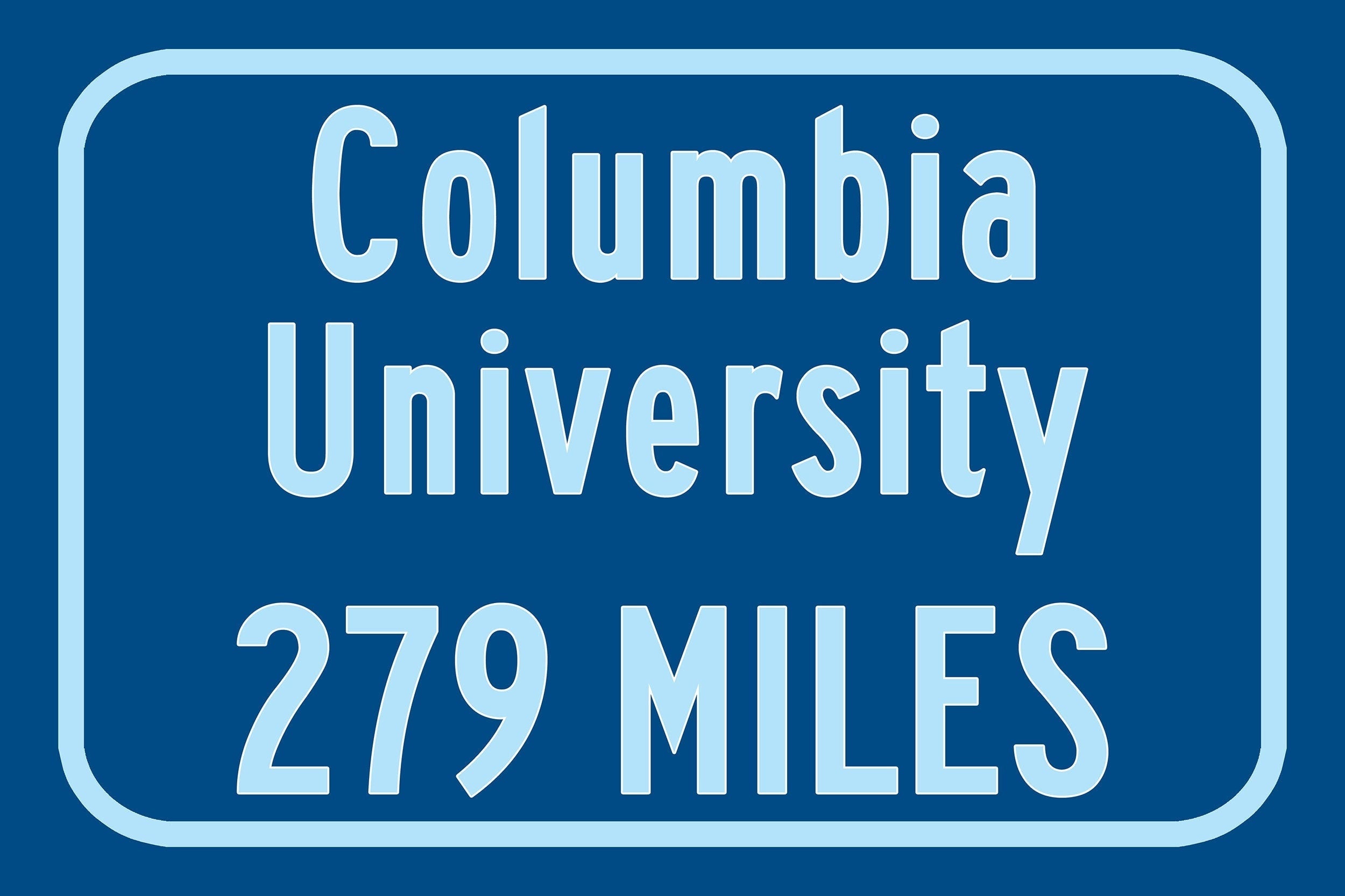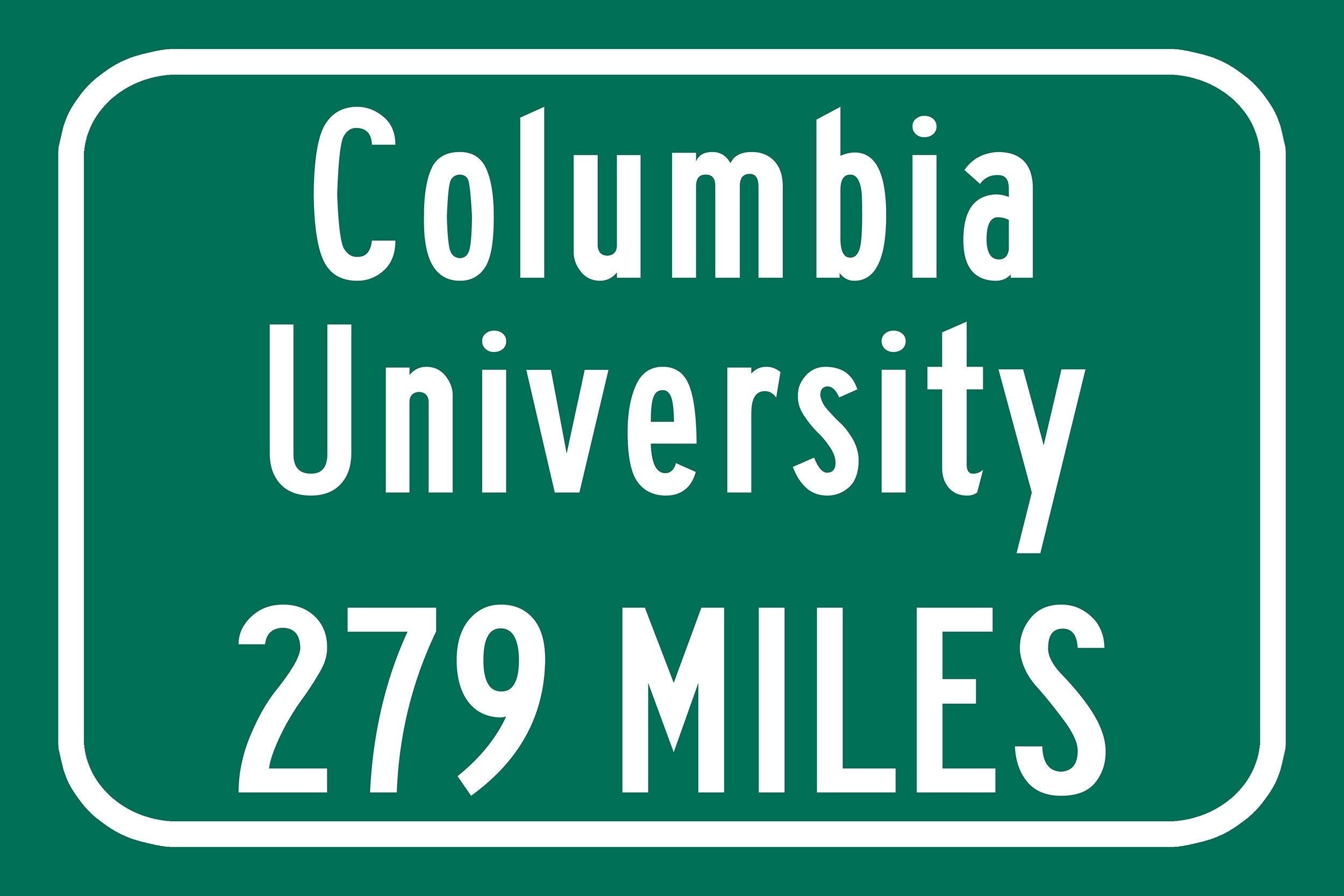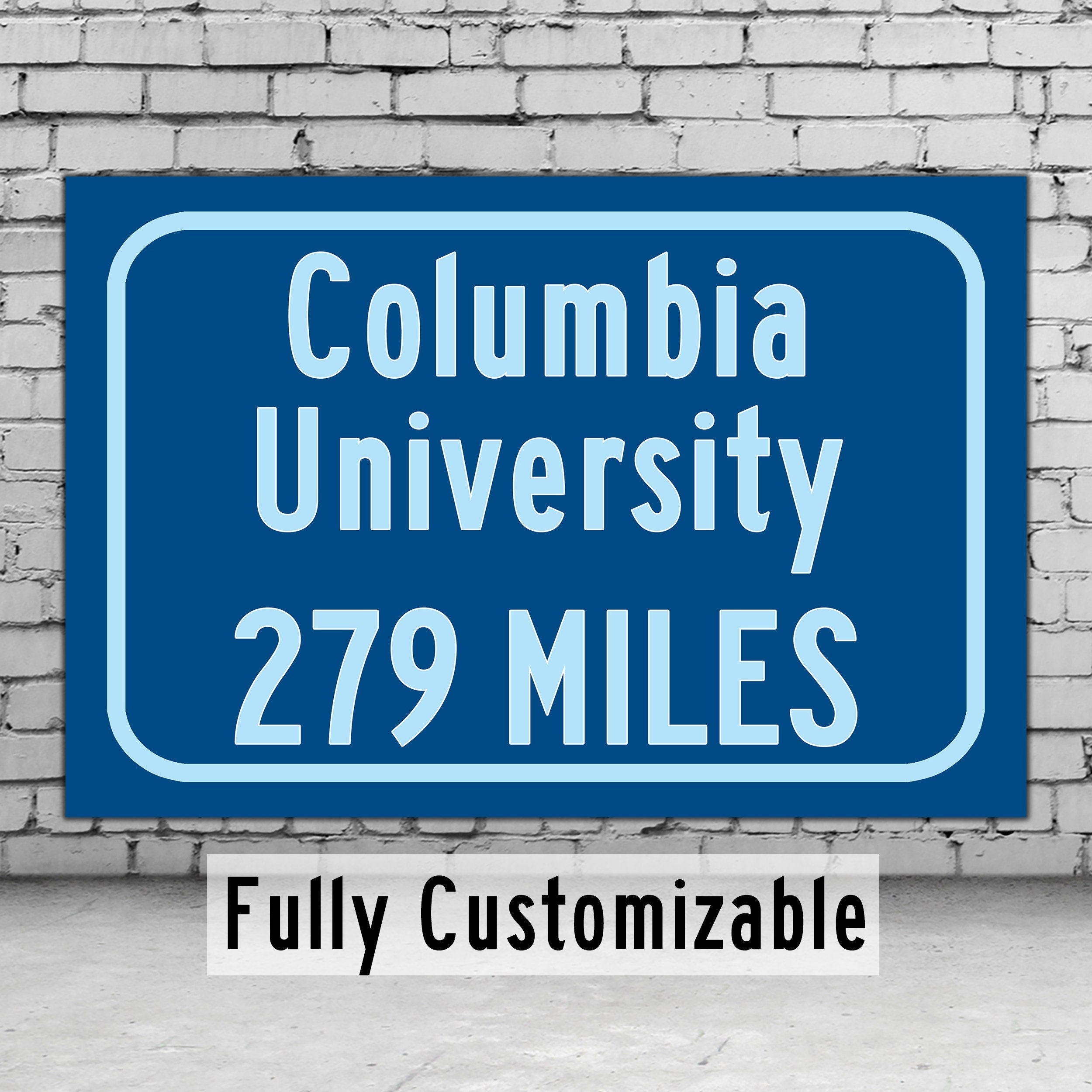 Personalized Highway Distance sign to Columbia University / New york New york / Columbia Lions