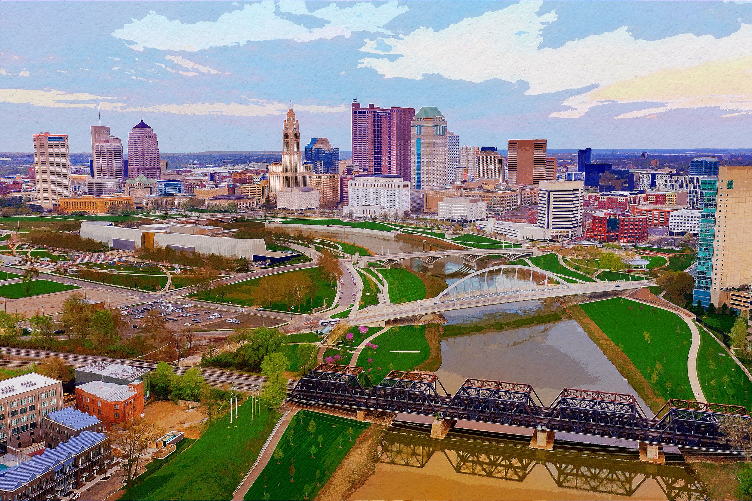 Columbus skyline watercolor canvas, Columbus watercolor canvas, Columbus Wall canvas, Columbus watercolor art Columbus photo, Columbus