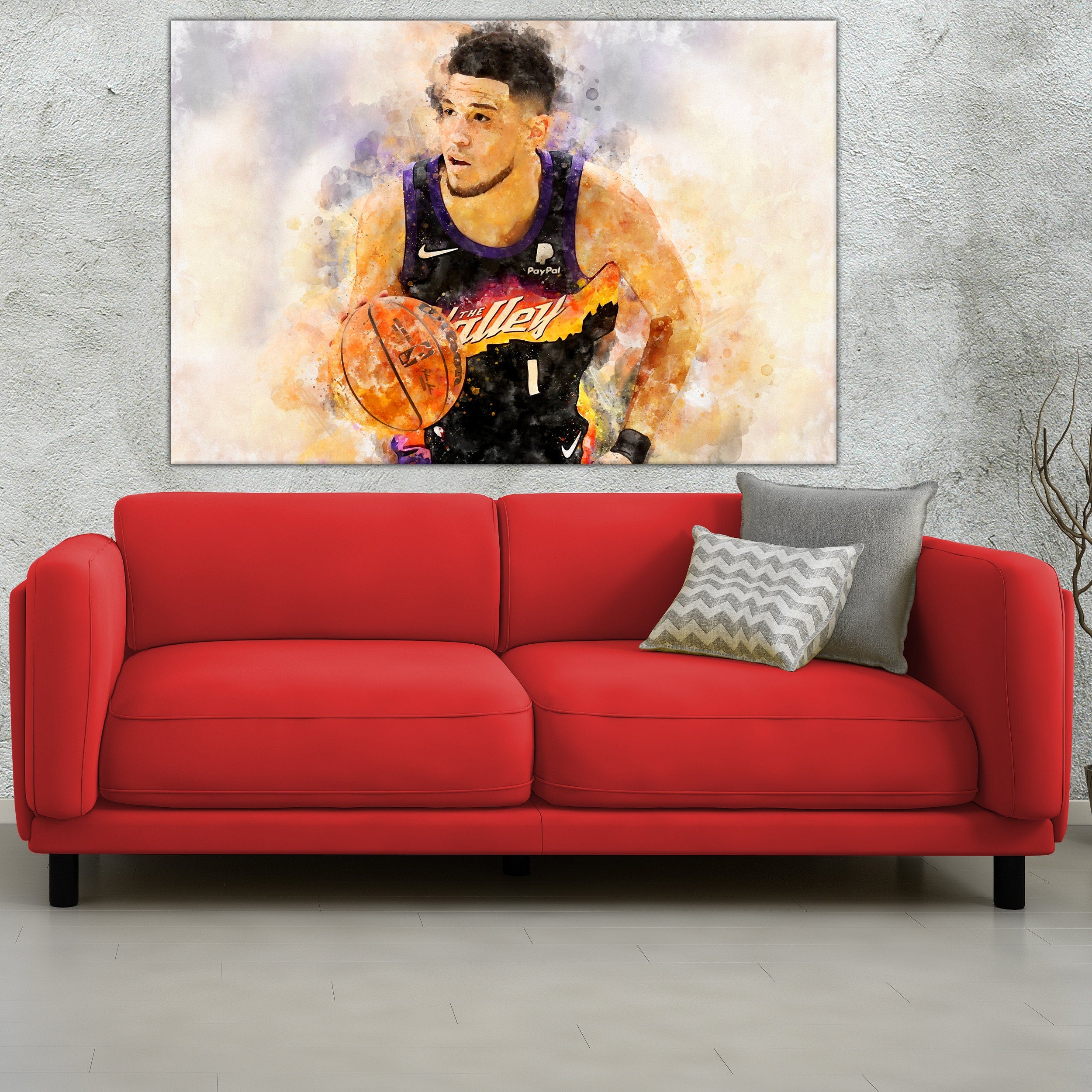 Great for a piece of Devin Booker wall art. Available in several sizes as an unframed print or a ready to hang mounted canvas