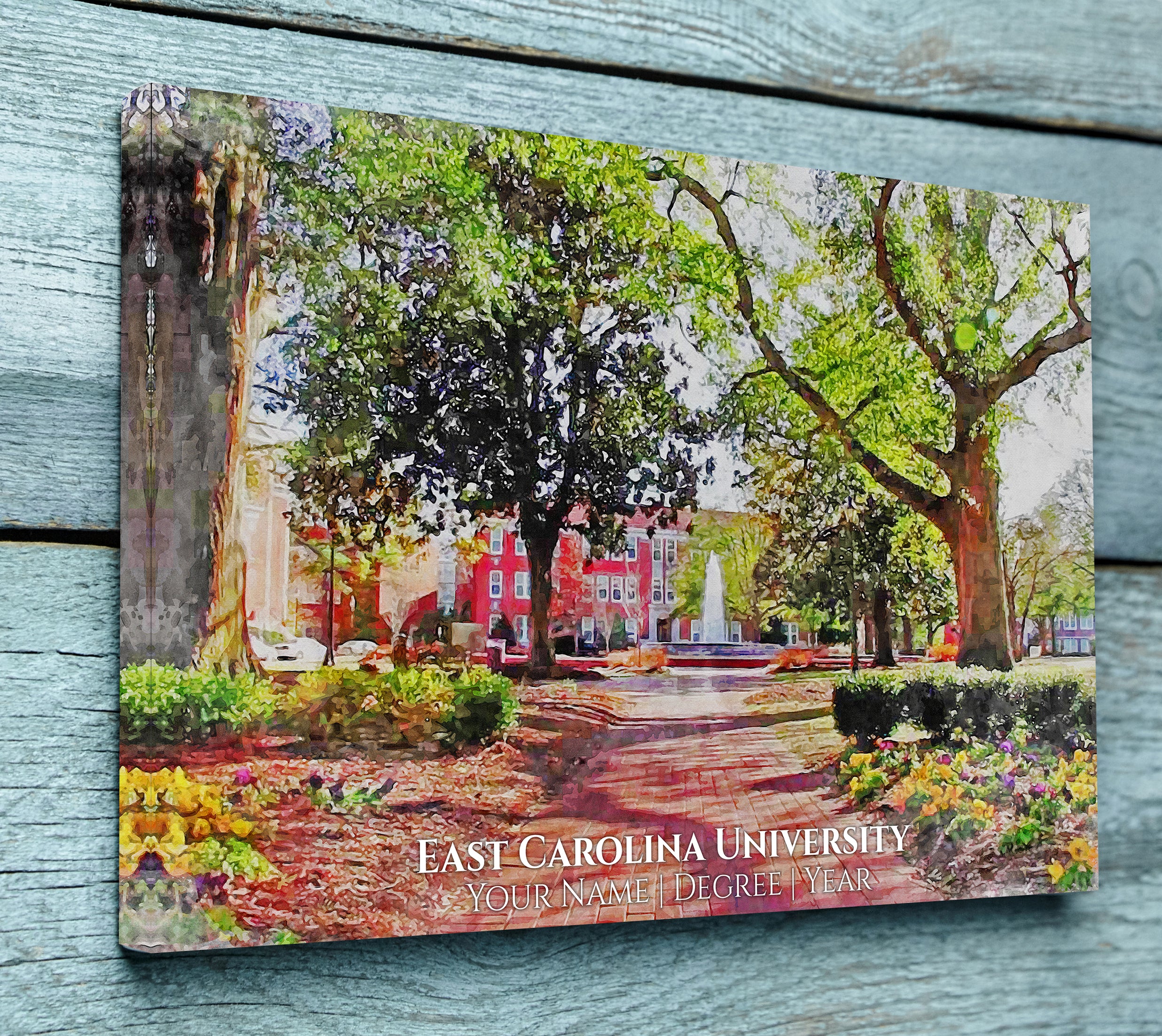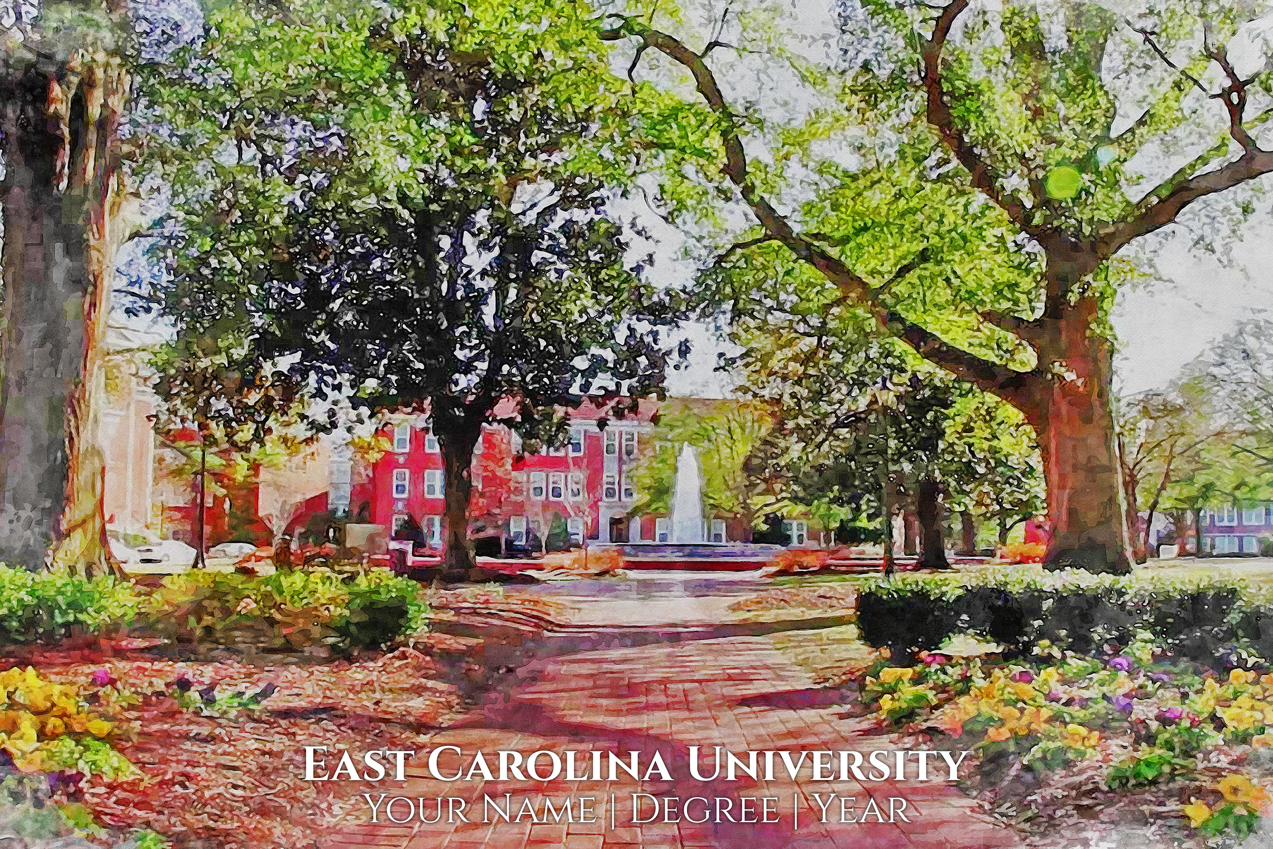 You will love these watercolor digital prints of East Carolina University. Perfect for a graduation gift. These make wonderful gift for East Carolina University Alumni and fans. Feel free to customize it as well when you check out. We will send a proof for you to approve before we print so please check your email about 24hrs after you order