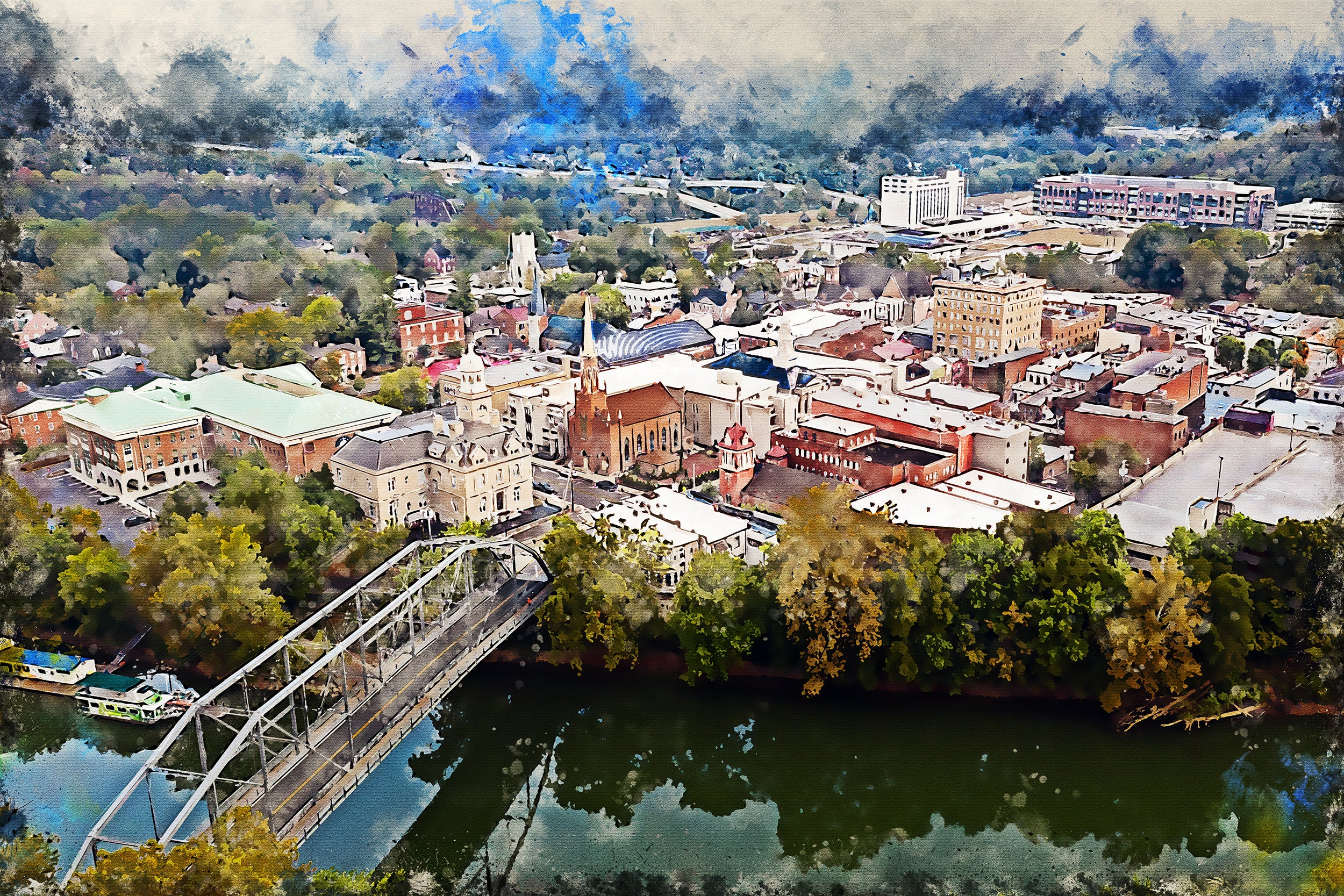 The beautiful city of Frankfort KY watercolor on canvas framed and ready to hang. Stunning colors that make for the perfect wall decor. Frankfort KY watercolor canvas