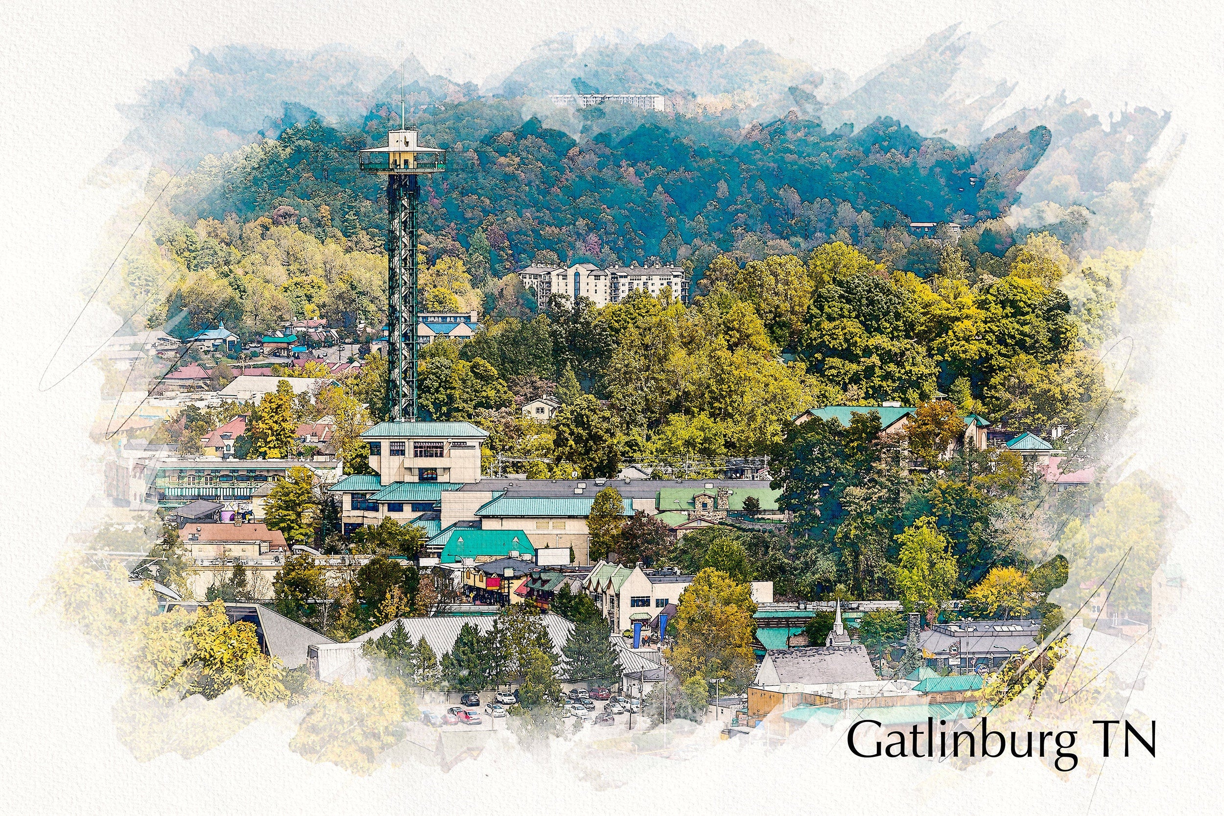 Gatlinburg Tennessee watercolor on canvas framed and ready to hang. Stunning colors that make for the perfect wall decor. Gatlinburg watercolor canvas
