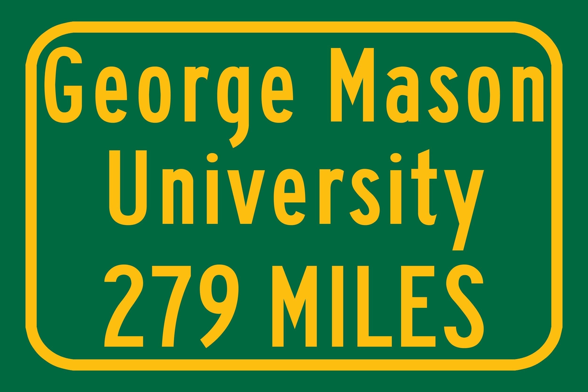 Personalized Highway Distance sign to George Mason University / George Mason University sign. George Mason University Patriots sign.