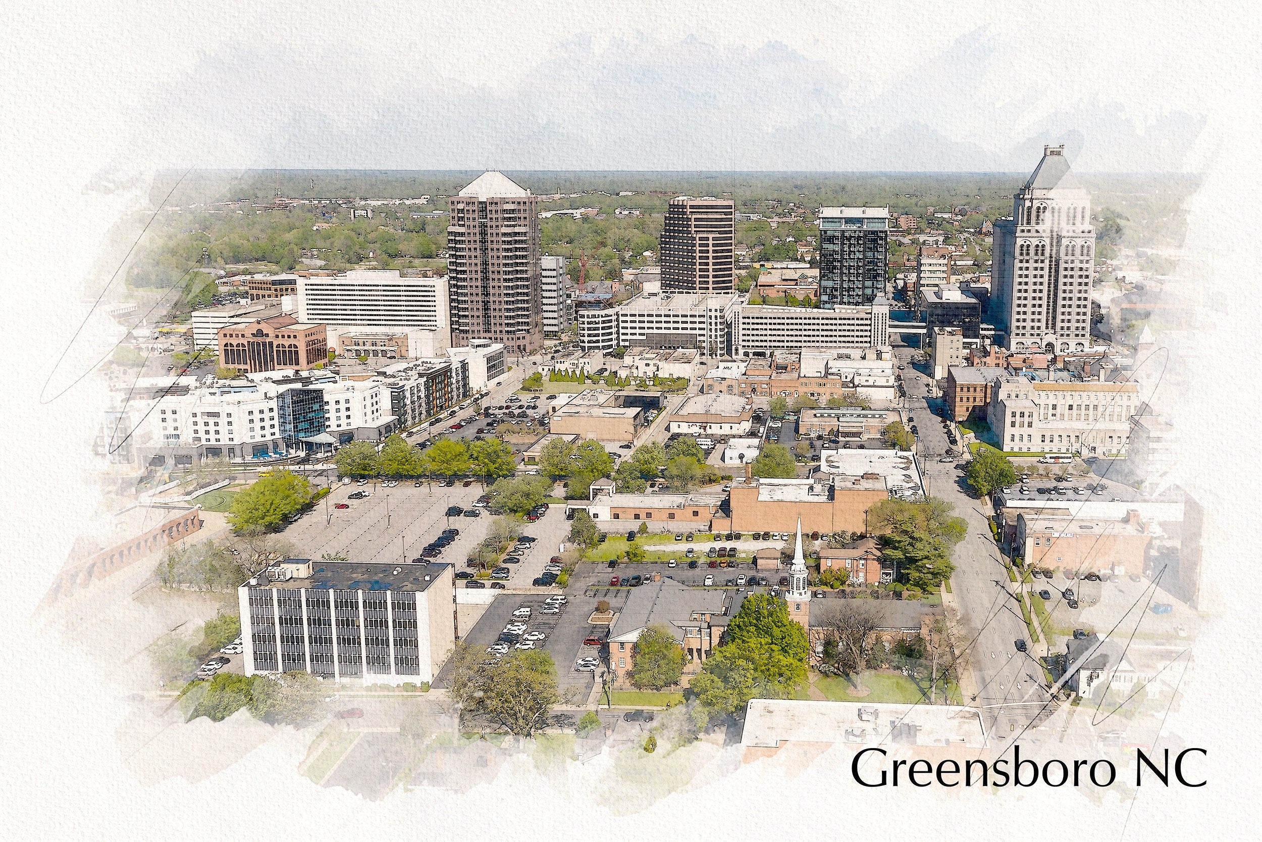 Greensboro sketch watercolor canvas, Greensboro skyline watercolor, Greensboro NC Canvas Wall Art, Greensboro wall art canvas,
