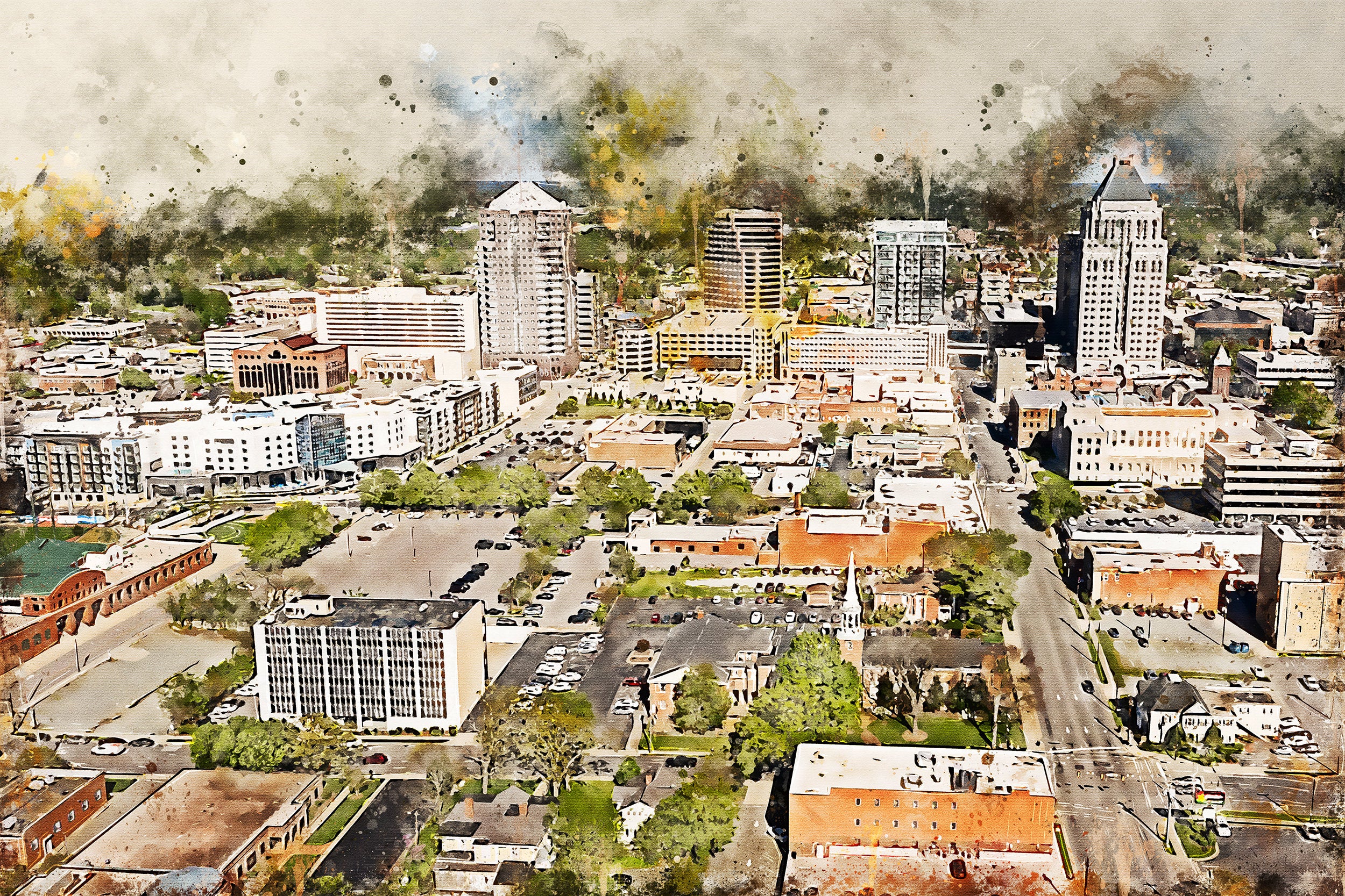The beautiful watercolor of Greensboro North Carolina on canvas framed and ready to hang. Stunning colors that make for the perfect wall decor. Greensboro NC watercolor canvas