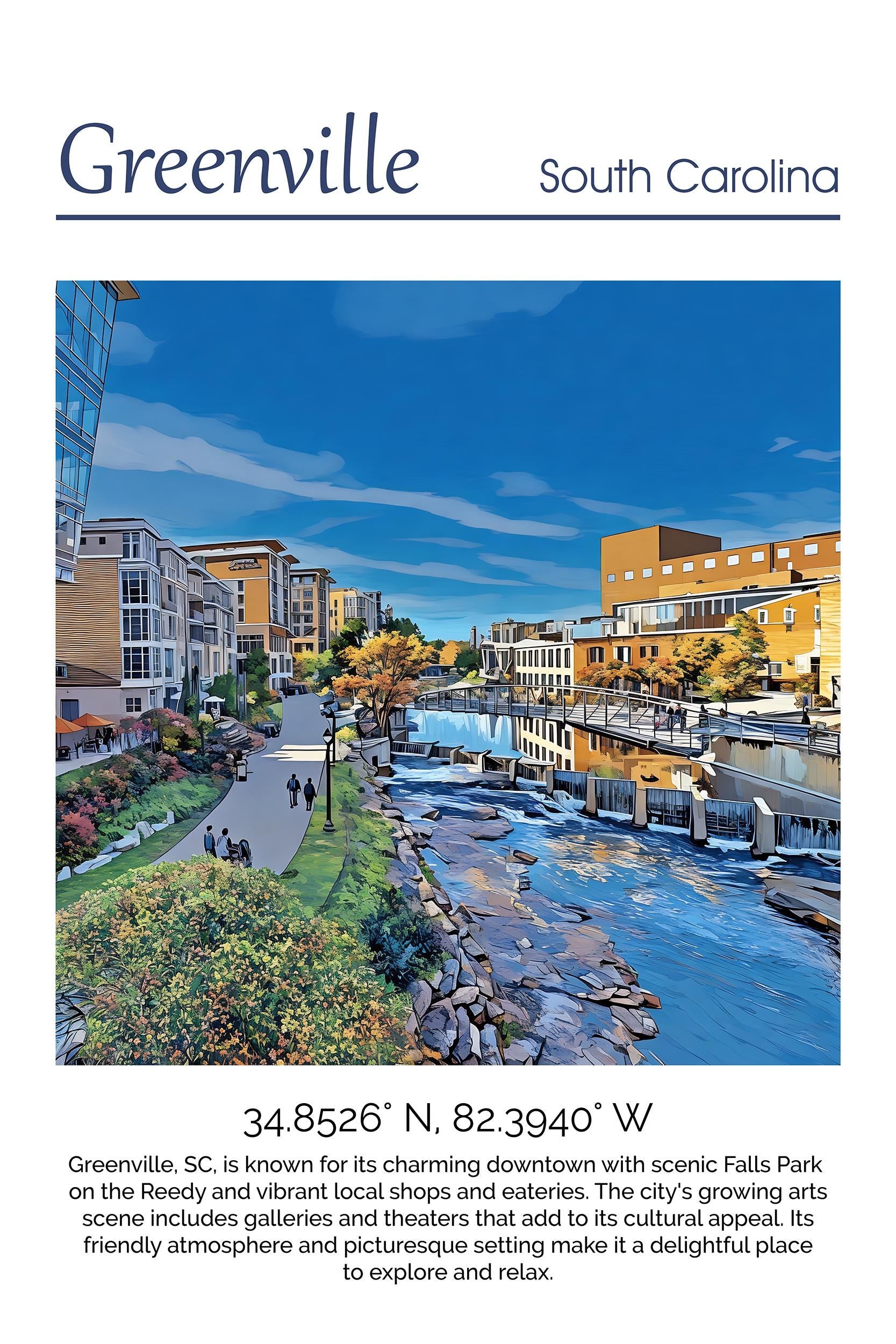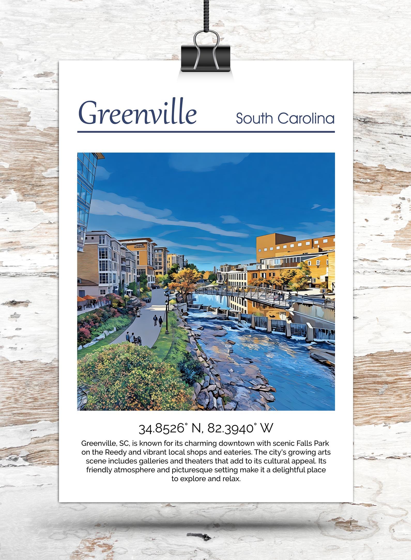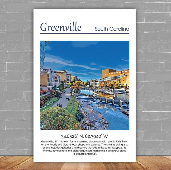 Add this Greenville travel art canvas print to your collection today and let the charm of this city brighten up your space!