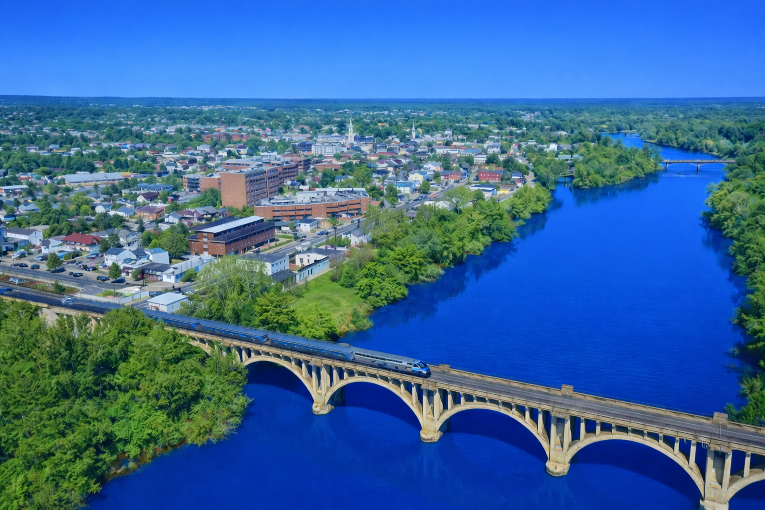 This artwork features a view of Fredericksburg, Virginia near the river, showing the town, the bridge, and the water that runs through the area. It’s a peaceful scene that captures the everyday beauty of Fredericksburg and the balance between nature and the city.