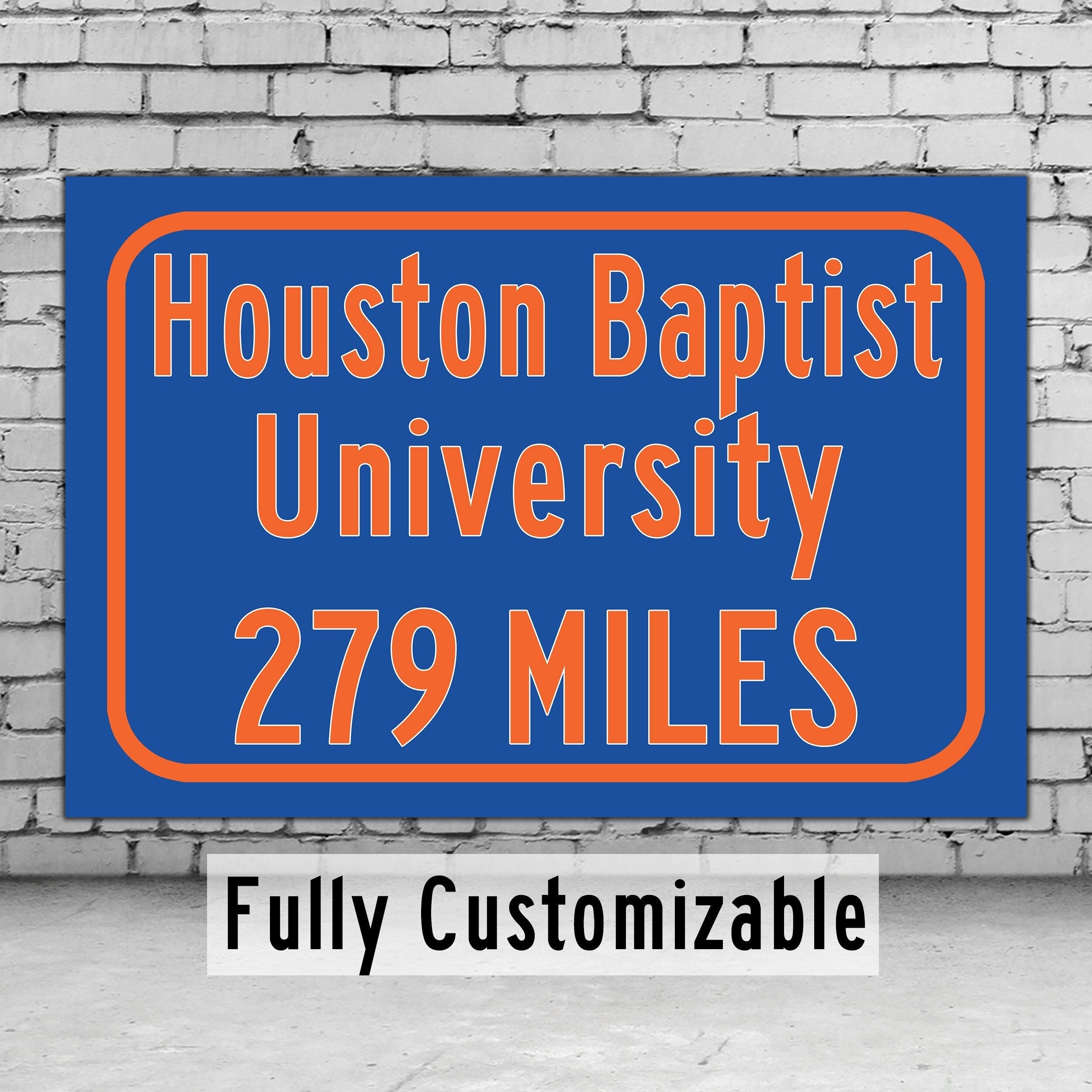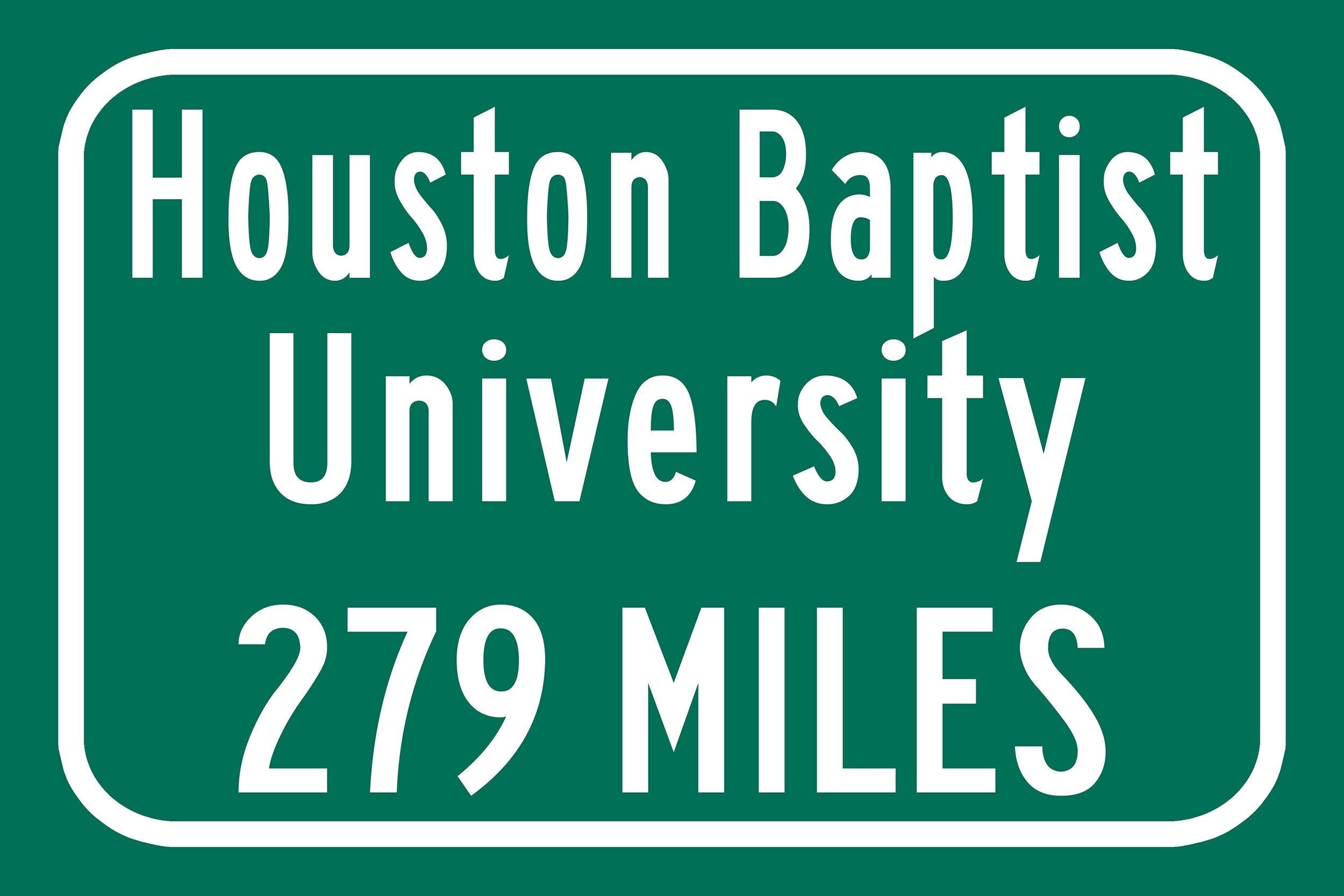 Personalized Highway Distance sign to Houston Baptist University / Houston Baptist Huskies