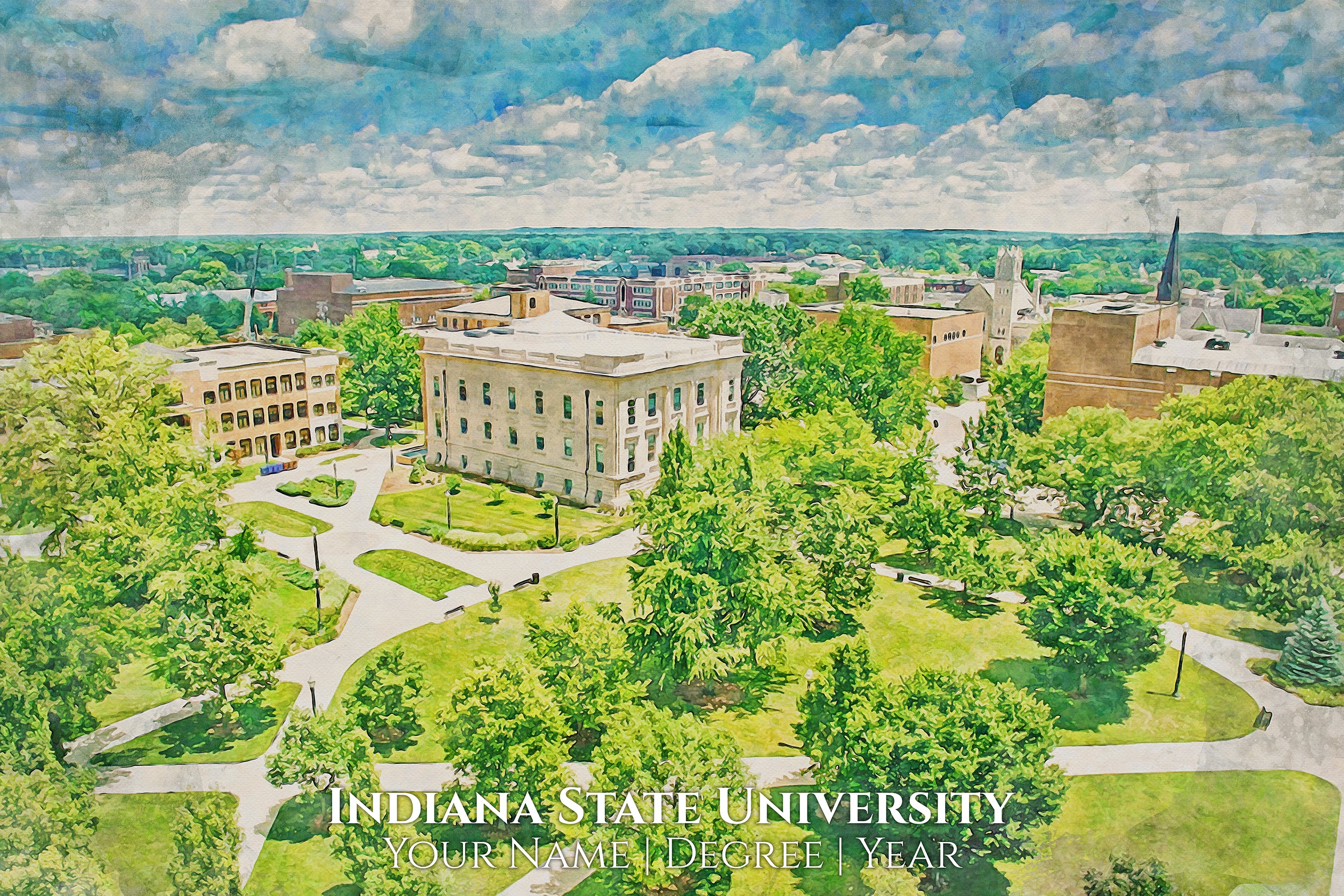 You will love these watercolor digital prints of Indiana State University. Perfect for a graduation gift. These make wonderful gift for Indiana State University Alumni and fans. Feel free to customize it as well when you check out. We will send a proof for you to approve before we print so please check your email about 24hrs after you order
