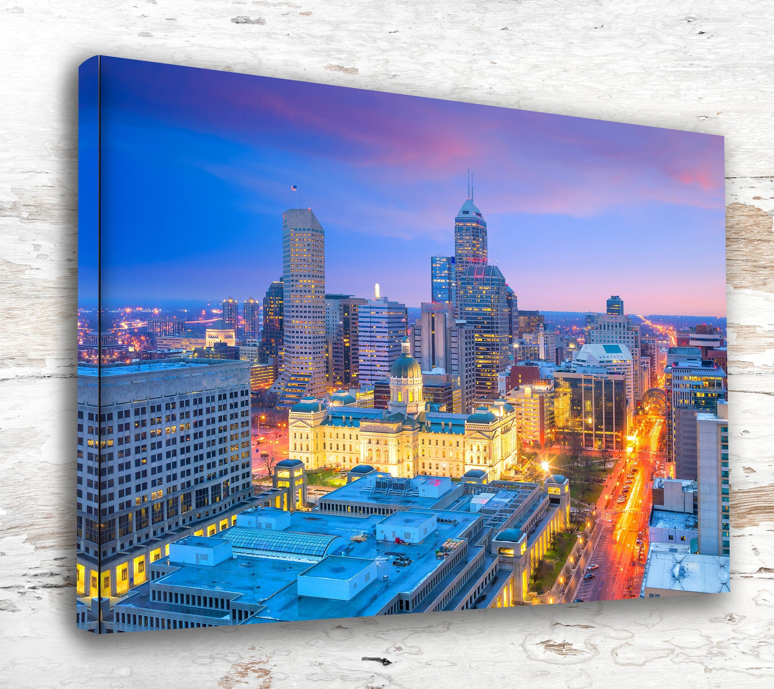 Transform your space with the stunning beauty of the Indianapolis skyline captured on canvas. This wall art canvas is the perfect addition to your home decor, offering a unique and eye-catching focal point for any room.