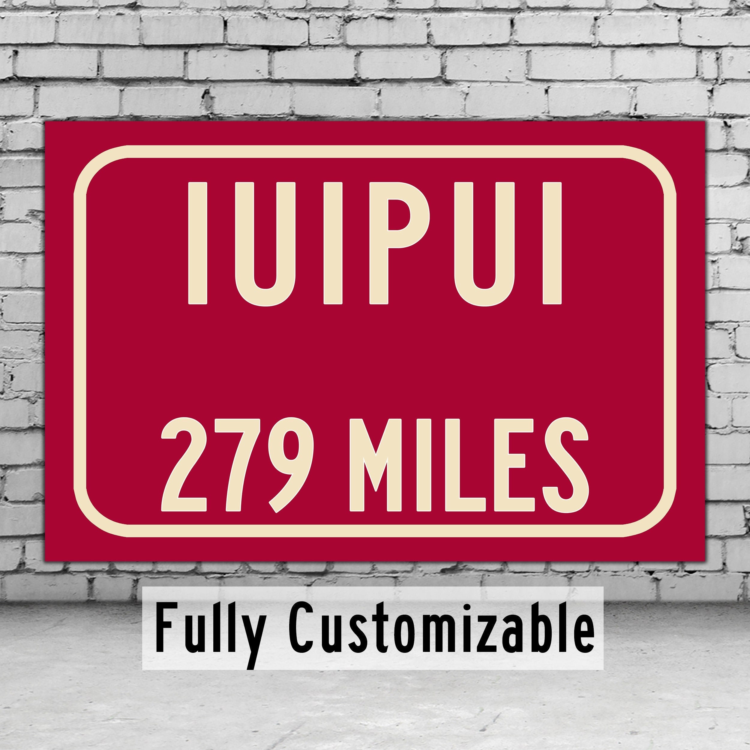 Personalized Highway Distance sign to IUPUI / Indianapolis Indiana / IUPUI Jaguars
