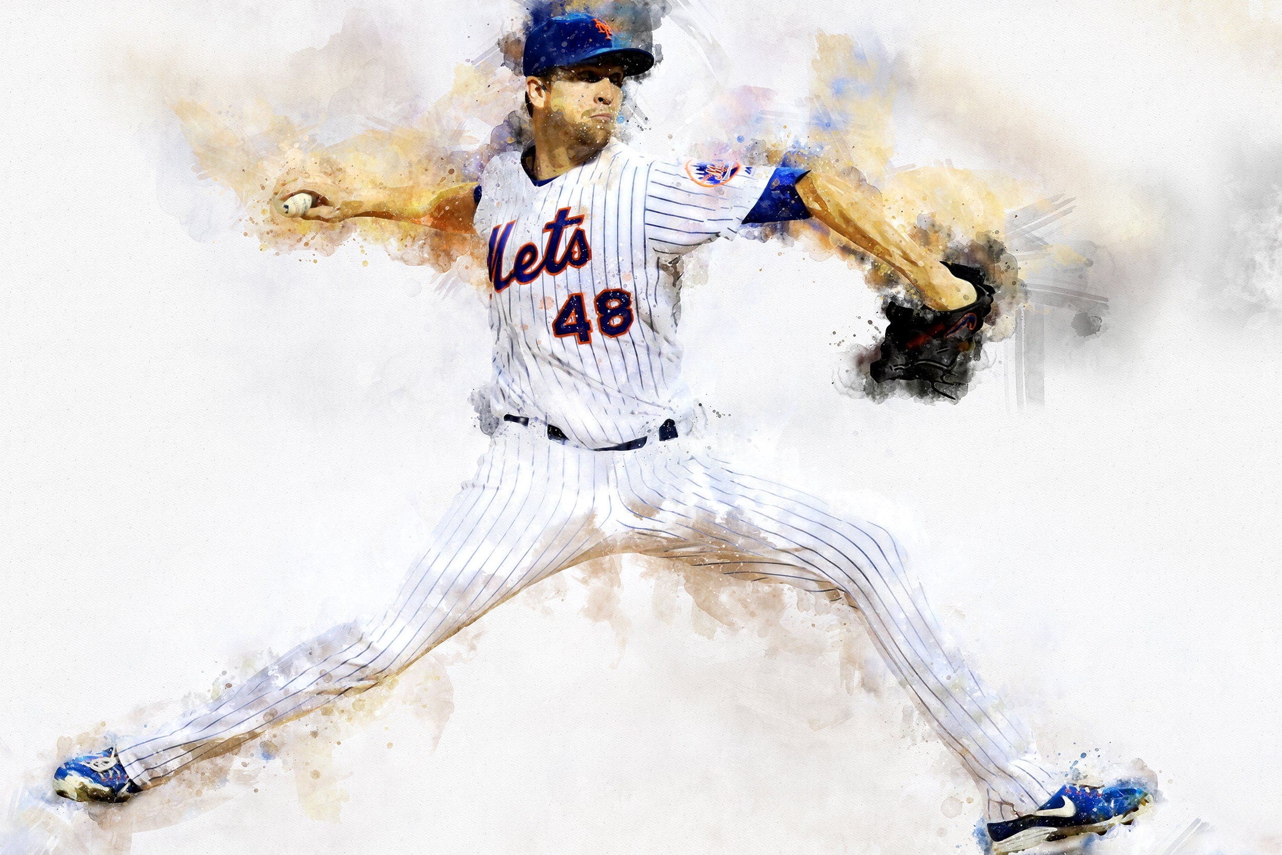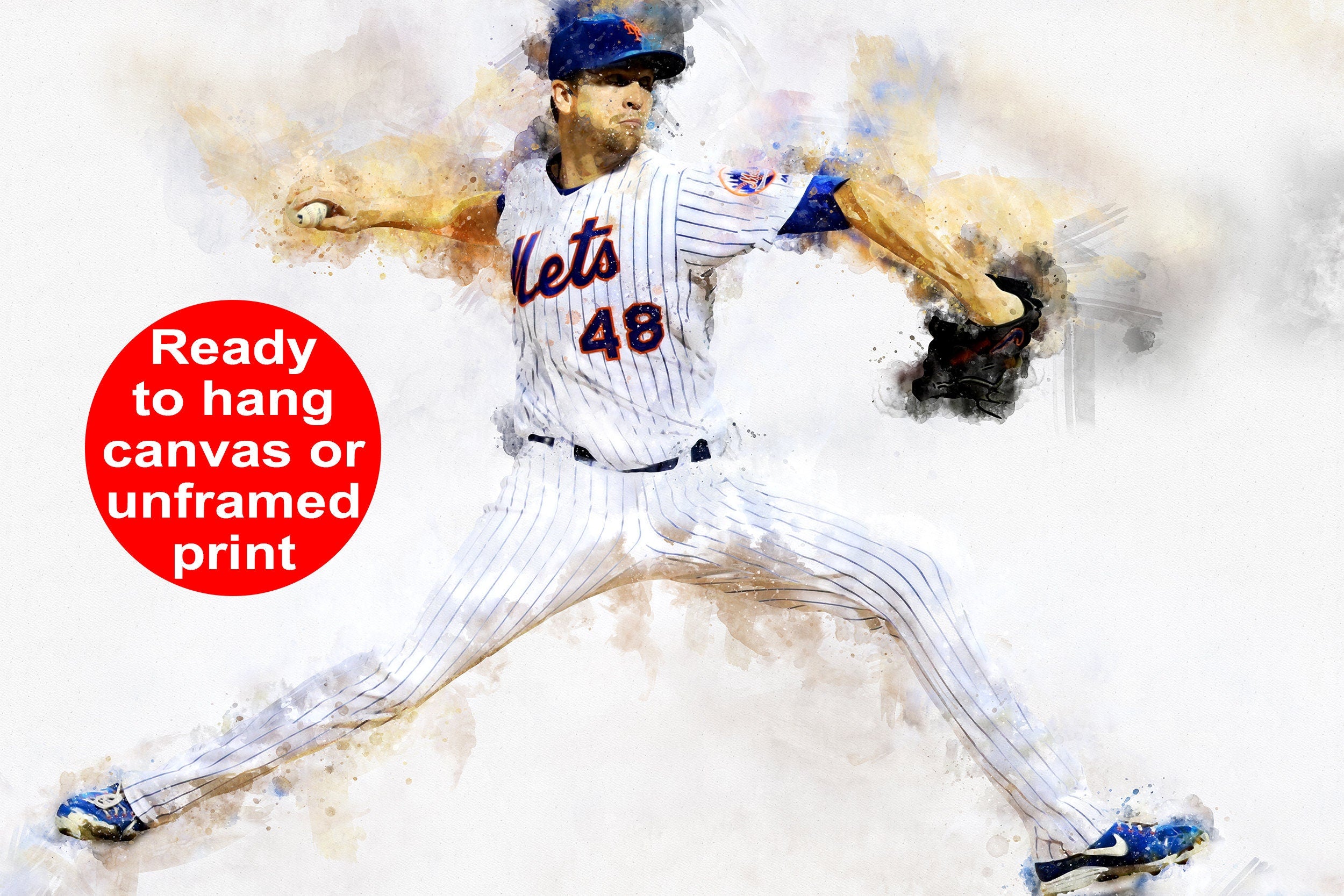 Great for a piece of Jacob deGrom wall art. Available in several sizes as an unframed print or a ready to hang mounted canvas.
