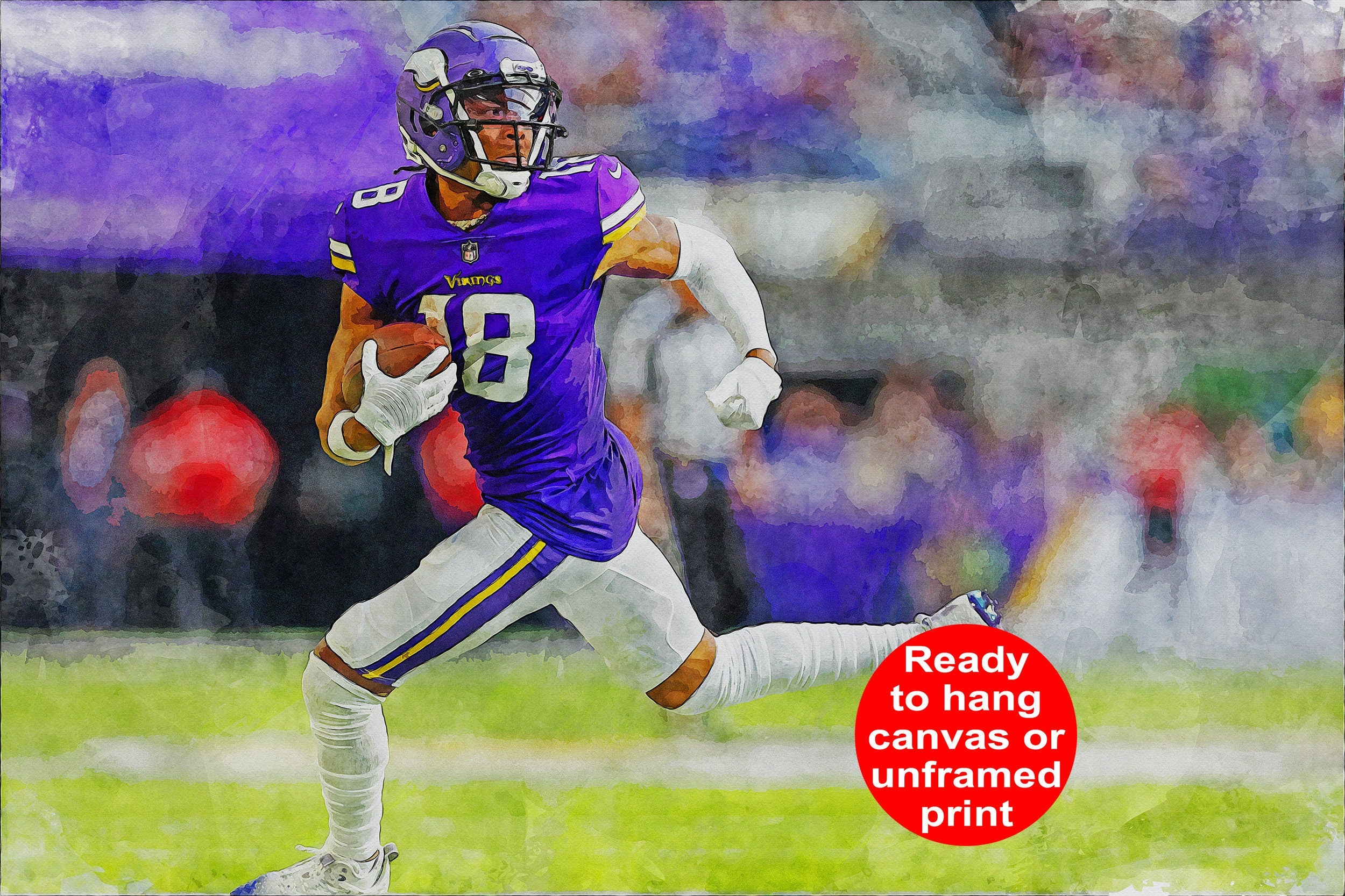 Great for a piece of Justin Jefferson wall art. Available in several sizes as an unframed print or a ready to hang mounted canvas