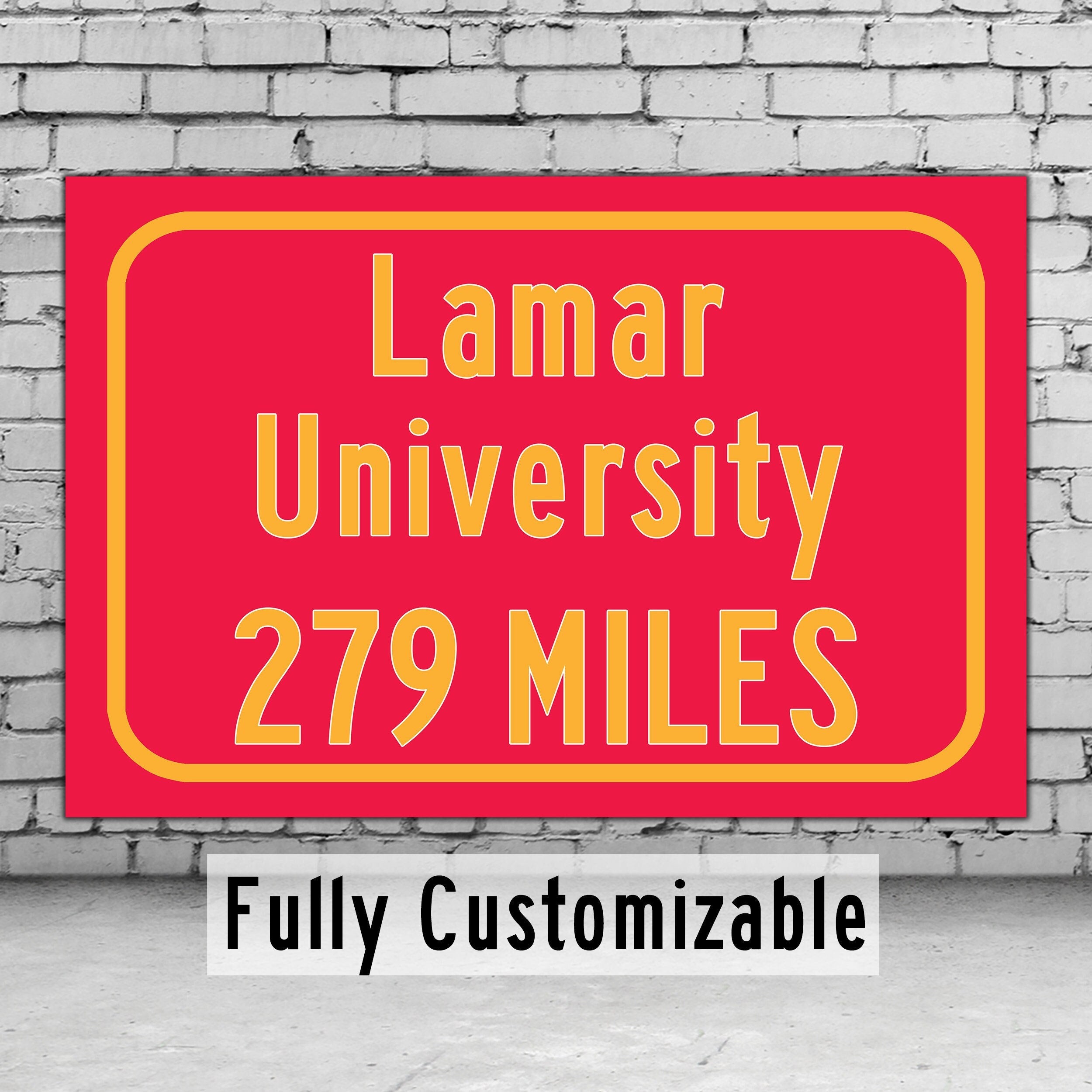 Personalized Highway Distance sign to Lamar University / Lamar University / Beaumont Texas