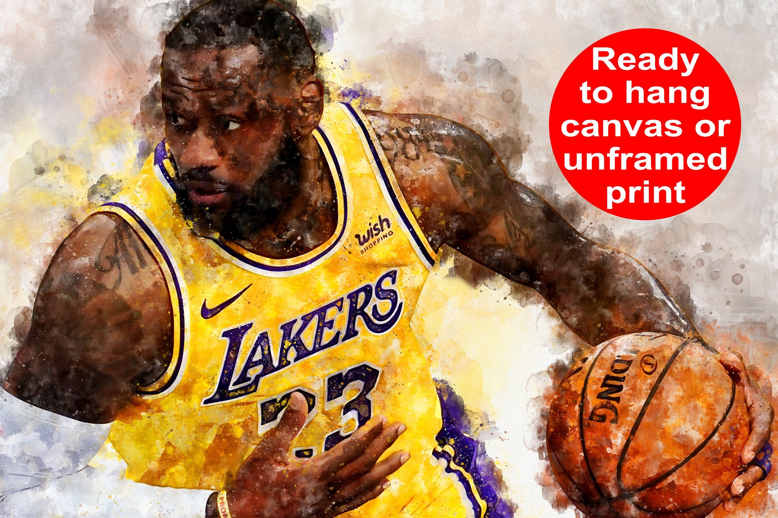 Great for a piece of LeBron James wall art. Available in several sizes as an unframed print or a ready to hang mounted canvas