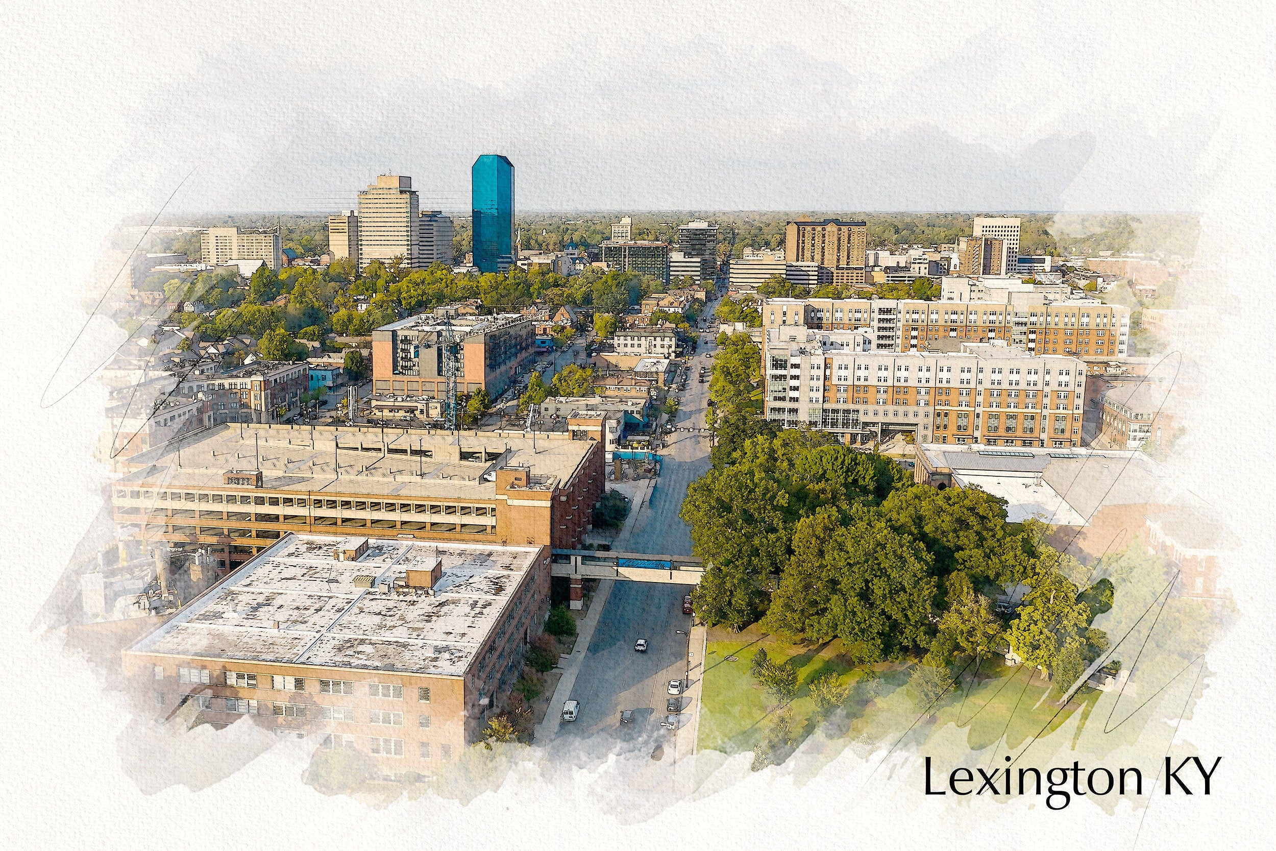 Lexington Kentucky sketch watercolor canvas, Lexington watercolor Wall Art, Lexington KY wall art canvas, Lexington KY art