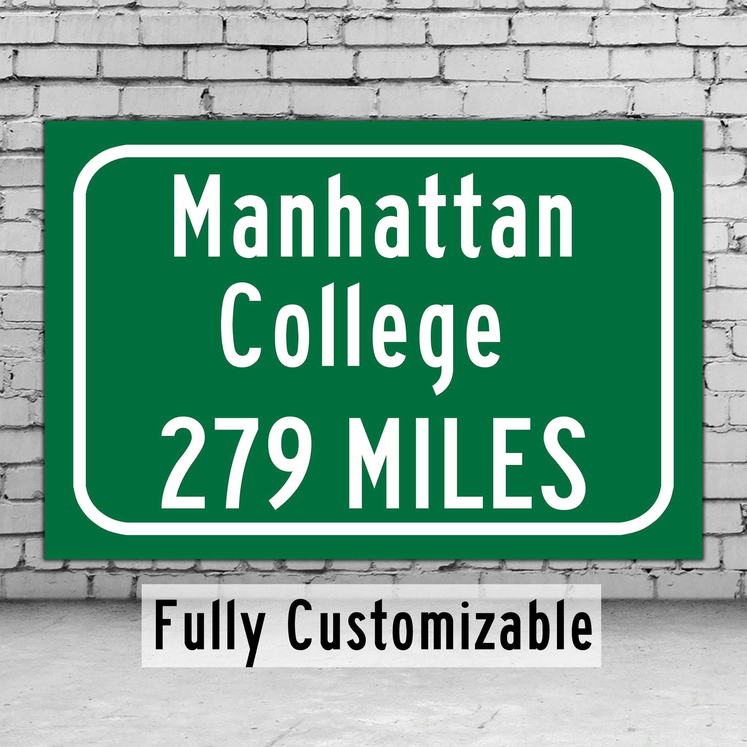 Personalized Highway Distance sign to Manhattan College / Manhattan Jaspers / Manhattan New York