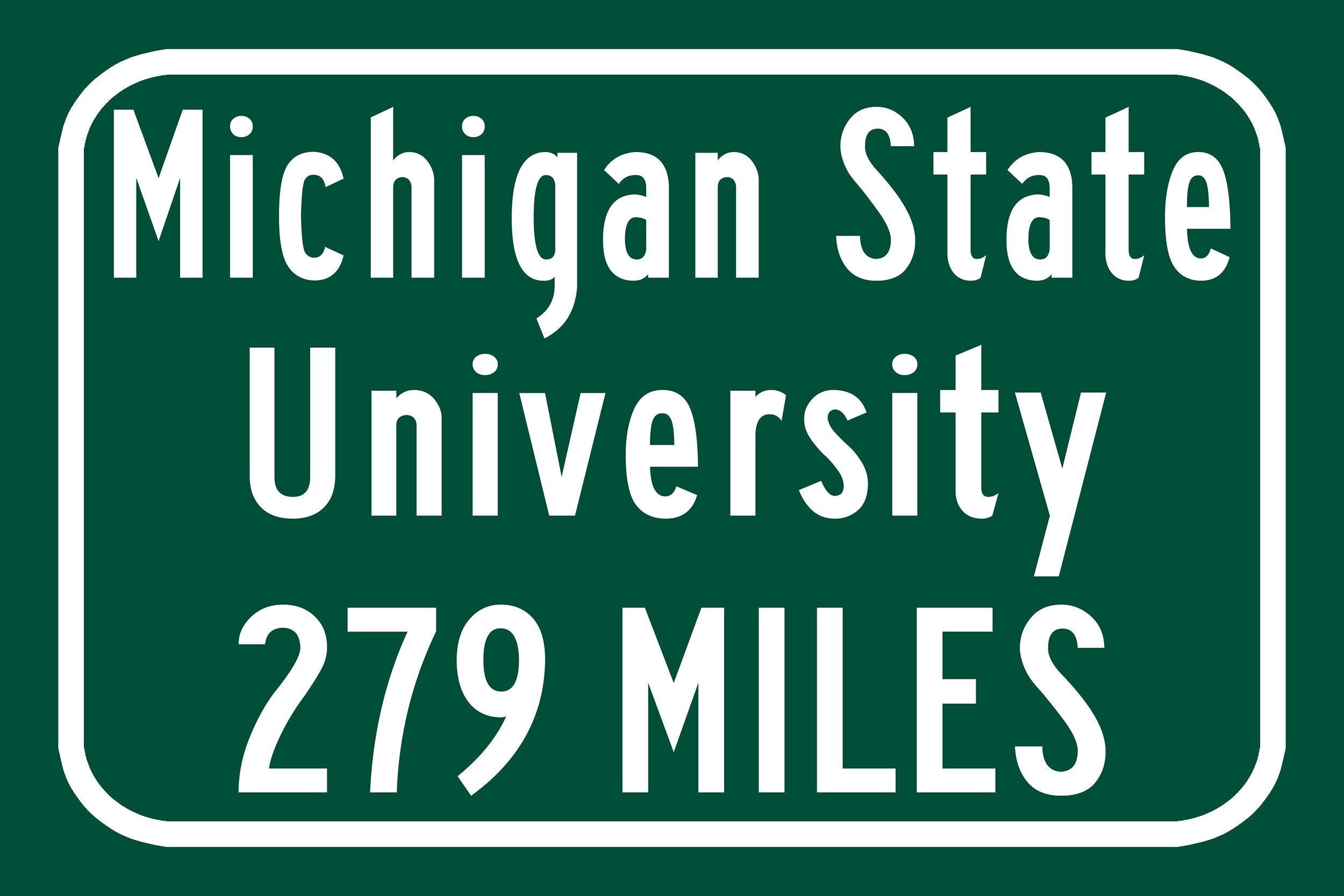 Personalized Highway Distance sign to Michigan State University Spartans. Michigan State University East Lansing Sign
