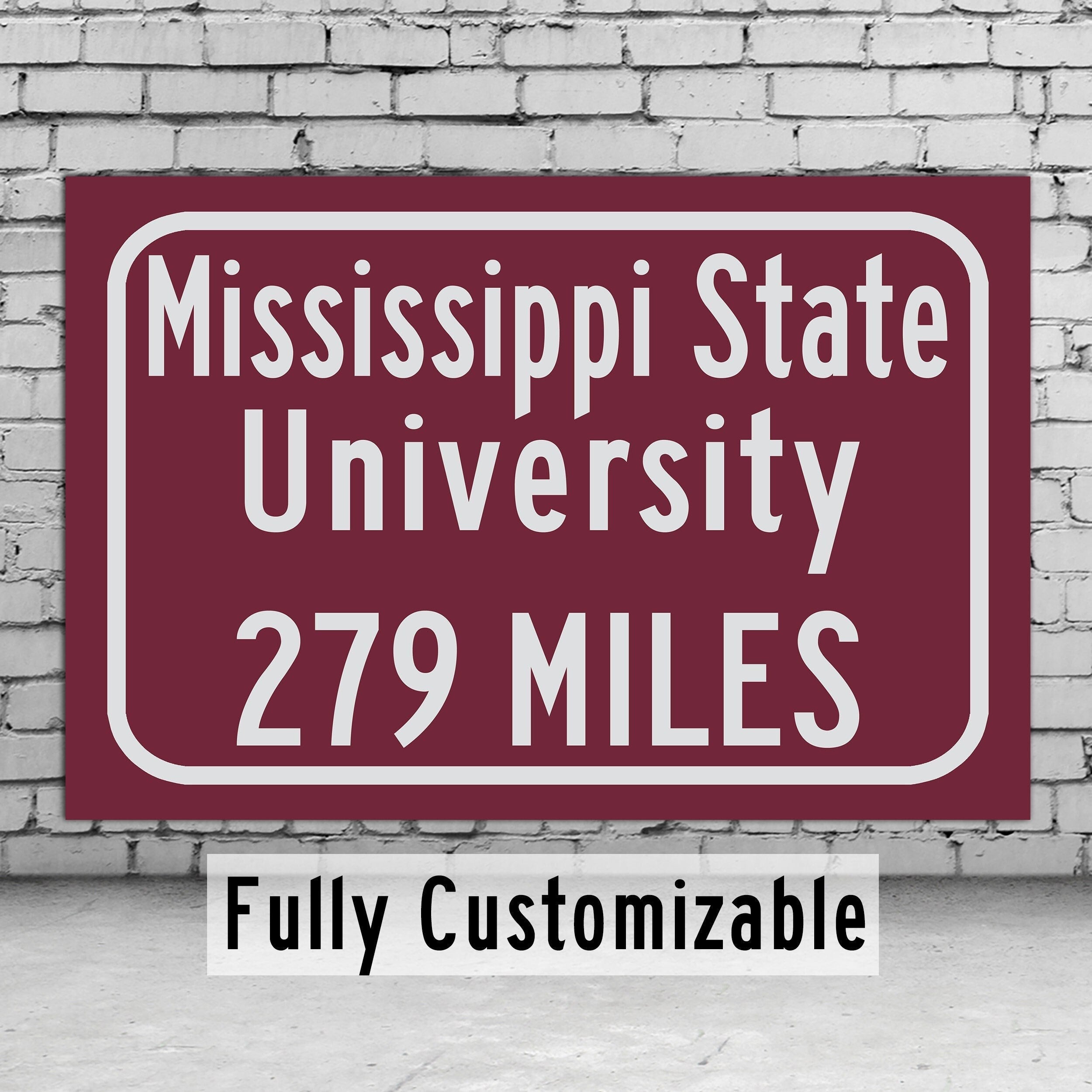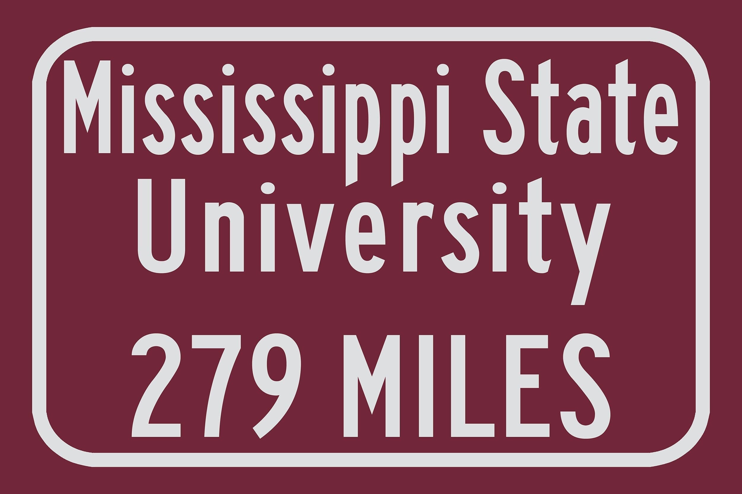 Personalized Highway Distance sign to Mississippi State University . Mississippi State University sign. Mississippi State University sign.