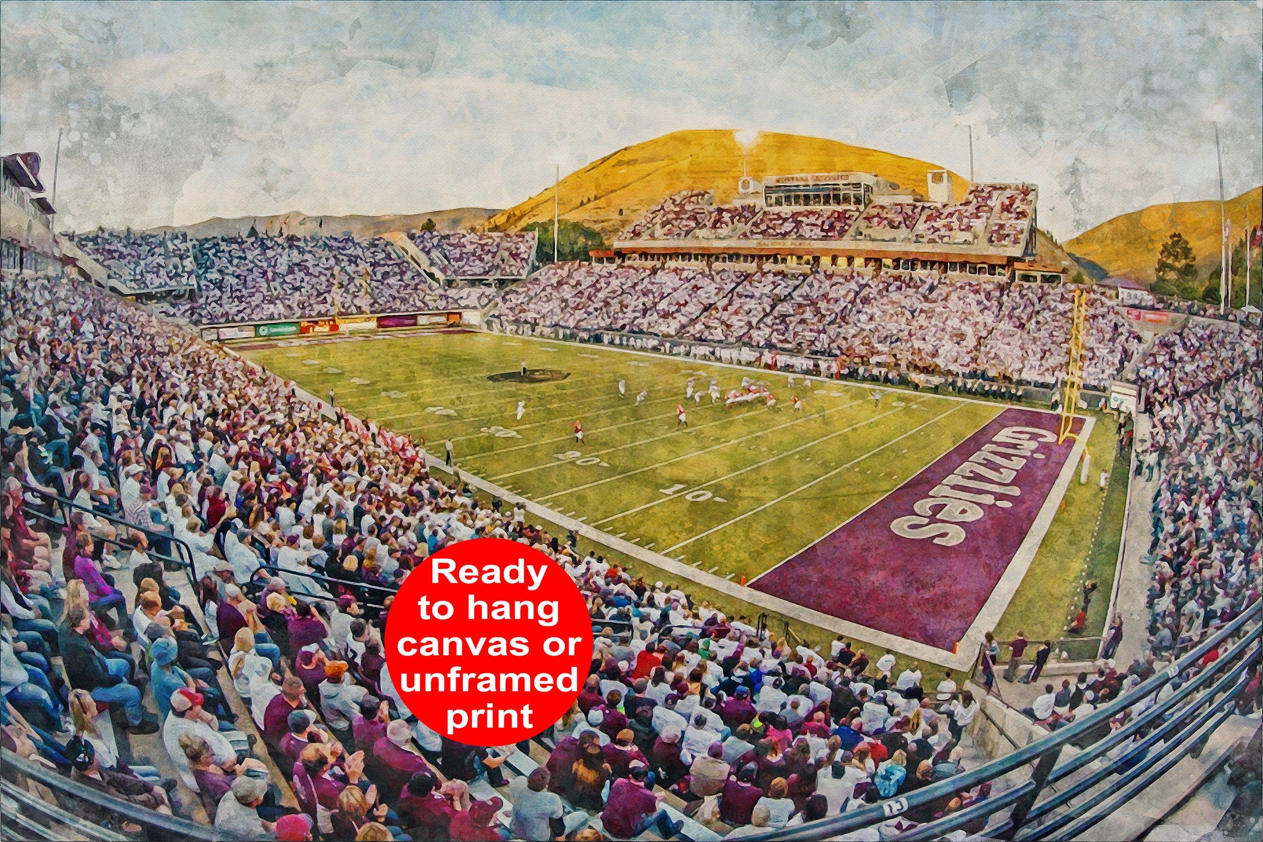 This Washington-Grizzly Stadium in Missoula Montana is the perfect decor for any home. This print of my digitally custom created wall art will last a lifetime . Washington-Grizzly Stadium in Missoula Montana Poster